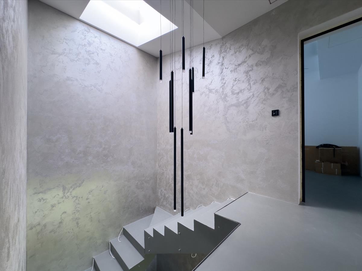 Földszint: Tágas, nyitott nappali modern konyhával, étkezővel és nappalival, mindegyik közvetlen hozzáféréssel a kültéri teraszhoz és medencéhez. Ez a szint tartalmaz egy kamrát, műszaki helyiséget és vendég toalettet is. Nagy tolóüveg ajtók nyílnak egy napfényes mediterrán kertre, tervezői medencével, üvegfallal és akadálytalan tengeri kilátással – ideális a reggeli kávéhoz vagy esti italokhoz.