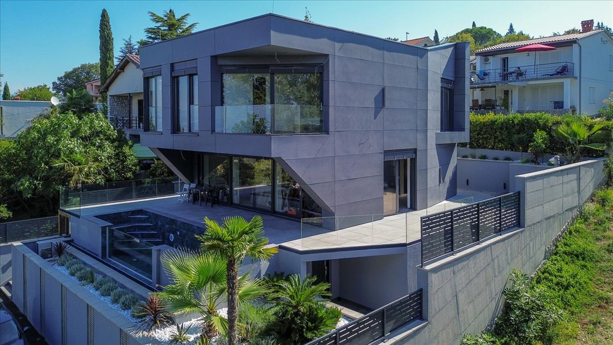 Fedezze fel ezt az egyedülálló lehetőséget, hogy modern luxusvillát birtokoljon Njivicében, a népszerű Krk-szigeten, mindössze 100 méterre a tengertől. Ez a kivételesen újonnan épült villa, összesen 349 m² lakóterülettel, egy 420 m²-es, gondozott telken helyezkedik el egy csendes, előkelő lakóövezetben, teljes magánéletet és lenyűgöző panorámás kilátást kínálva az Adriai-tengerre.