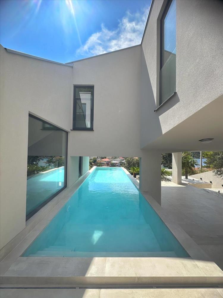 Prémium anyagokat használtak a belső térben, beleértve a legjobb minőségű olasz kerámiákat, padlófűtést minden helyiségben, mágneses sínes világítórendszert és magas színvonalú külső nyílászárókat, amelyek fát és alumíniumot kombinálnak. a villa teljesen légkondicionált, és két jármű számára fedetlen parkolóval rendelkezik. Ez a tulajdon egy tökéletes keveréke a kifinomult építészetnek, modern technikai megoldásoknak és a tiszta természeti környezetnek—ideális otthon azok számára, akik békét, luxust és teljes kényelmet keresnek az Adriai-tenger egyik legszebb helyszínén. Ref: RE-LB-IRO2644
