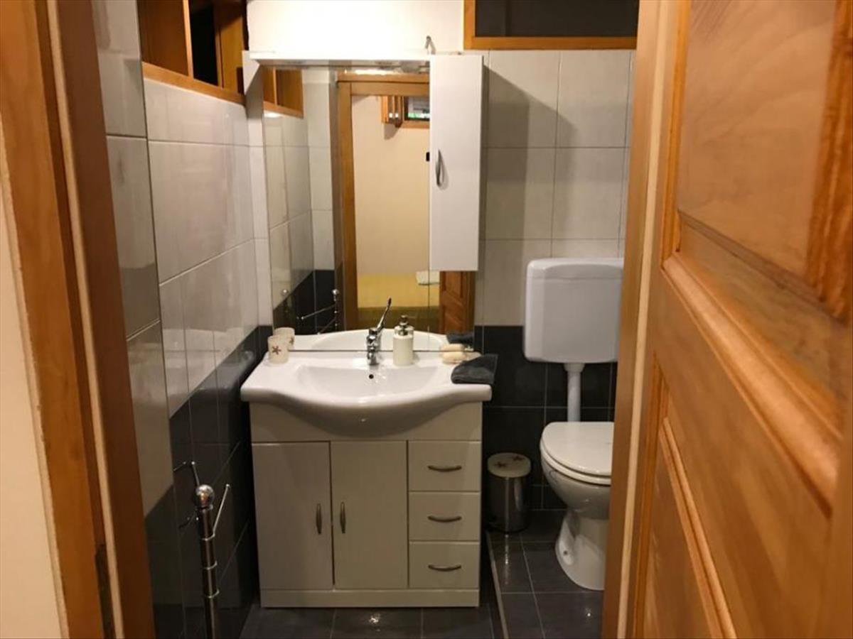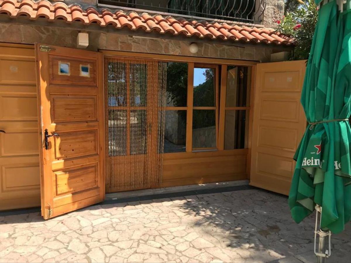 A nagyobb lakásban három szoba, fürdőszoba wc-vel, nagy nappali fatüzelésű kandallóval és konyha és étkező található, melyek egy szép nyitott teret alkotnak. a lakás egyedi olasz és német bútorokkal berendezett. a tengerre néző nagy teraszon nagy grillező és nyugágyak találhatók. Egy kisebb teraszról a saját olajfaligetre nyílik kilátás.