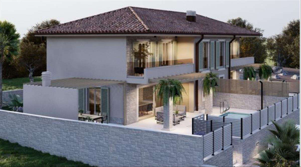 Építés alatt álló ikerház medencével a Krk-szigeti Malinskában!Ennek a csodálatos lakóhelynek minden fele 139, 69 négyzetméteren terül el, és aprólékosan úgy tervezték, hogy a lehető legnagyobb kényelmet és fényűző életet kínálja. Földszint