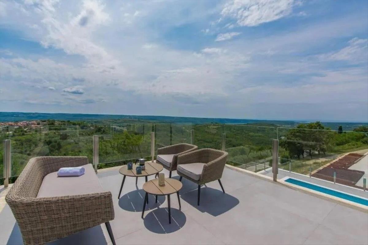 Luxusvilla eladó Buje közelében – panorámás kilátással a tengerre és a hegyekre a Buje közelében, egy festői dombtetőn található ez a lenyűgöző luxusvilla lélegzetelállító kilátást nyújt az Adriai-tengerre és az isztriai dombokra. Ez az exkluzív ingatlan 227, 6 m²-es elegáns lakótérrel büszkélkedhet egy 623 m²-es telken, és tökéletes keveréke a modern kényelemnek, a magánéletnek és a mediterrán varázsnak.