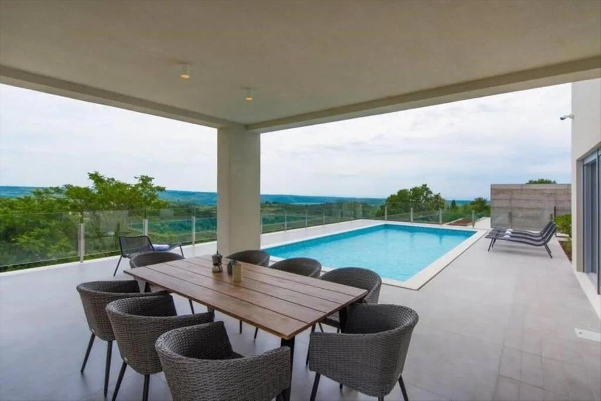 A villa legfontosabb jellemzői: Teljes terület: 227, 6 m² | Telek mérete: 623 m² Hálószobák: 4 | Fürdőszobák: 4 Fűtött medence, wellness és spa részleg (jakuzzi és finn szauna) Panorámás terasz kilátással a Motovunra és a Novigradi-öbölre Teljesen bútorozott, költözhető