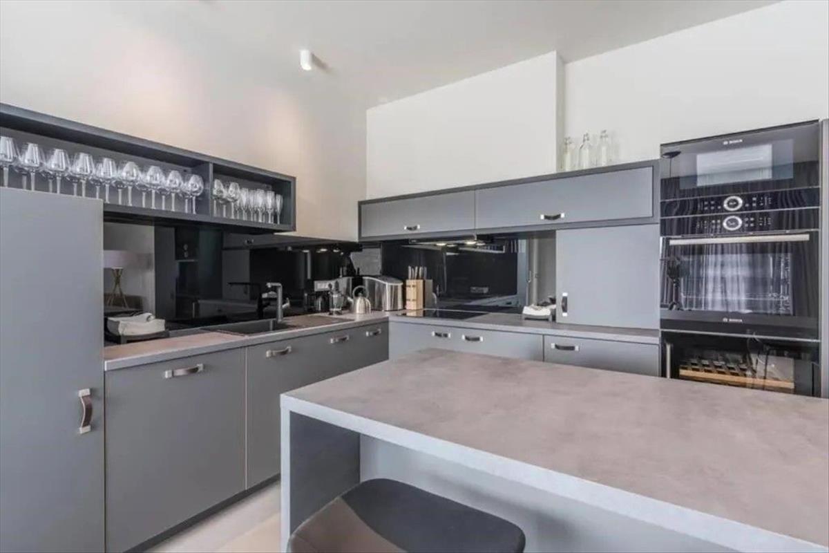 Földszint: Tágas nappali hangulatos kandallóval Elegáns egyterű konyha és étkező a padlótól a mennyezetig érő üvegfalak természetes fényt és zökkenőmentes beltéri-kültéri áramlást tesznek lehetővé Közvetlen hozzáférés a napsütötte teraszhoz, amely a következőket kínálja: Fűtött, 32 m²-es végtelenített medence lélegzetelállító panorámás kilátással Fedett kültéri konyha és grillező – tökéletes szórakozásra Buja mediterrán kert automatizált öntözőrendszerrel Az első hálószoba saját fürdőszobával Mosókonyha Privát wellness-zóna jakuzzival és finn szaunával