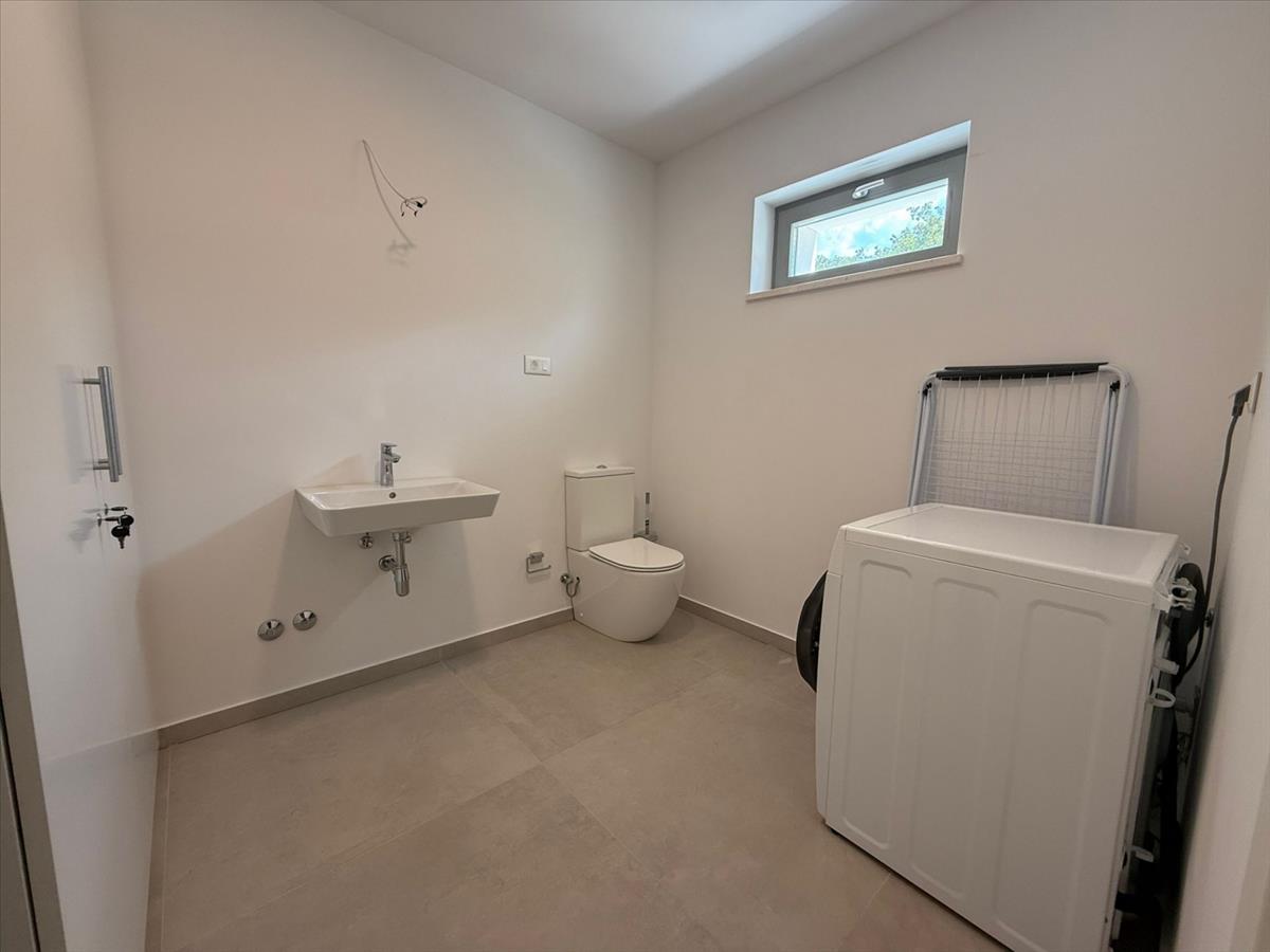 A kerített kert tele van zöld növényzettel és mediterrán növényekkel, a tökéletes harmóniát pedig a 27 m²-es fűtött medence és a napozóterasz zárja le, ahonnan kilátás nyílik a festői Motovun városára és Isztria belső területeire.