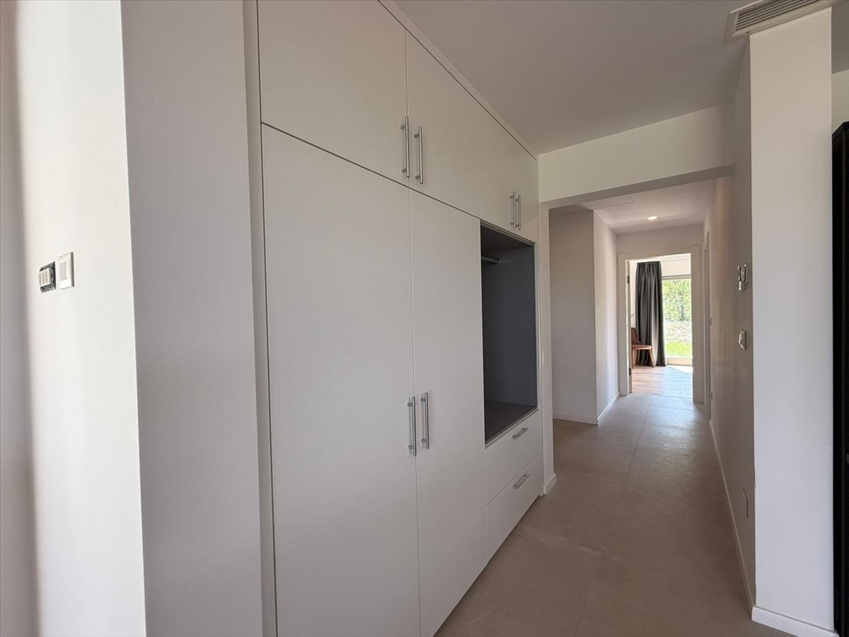 A villa földszintje, egyszerű és harmonikus arányokkal, egy nyitott koncepciójú térből áll, amely egyesíti a nappalit, az étkezőt és a konyhát, hozzáféréssel egy tágas, pergolával fedett teraszhoz. a padlás tervét két saját fürdőszobával rendelkező hálószoba, egy mosókonyha WC-vel és egy műszaki helyiség/raktár egészíti ki.
