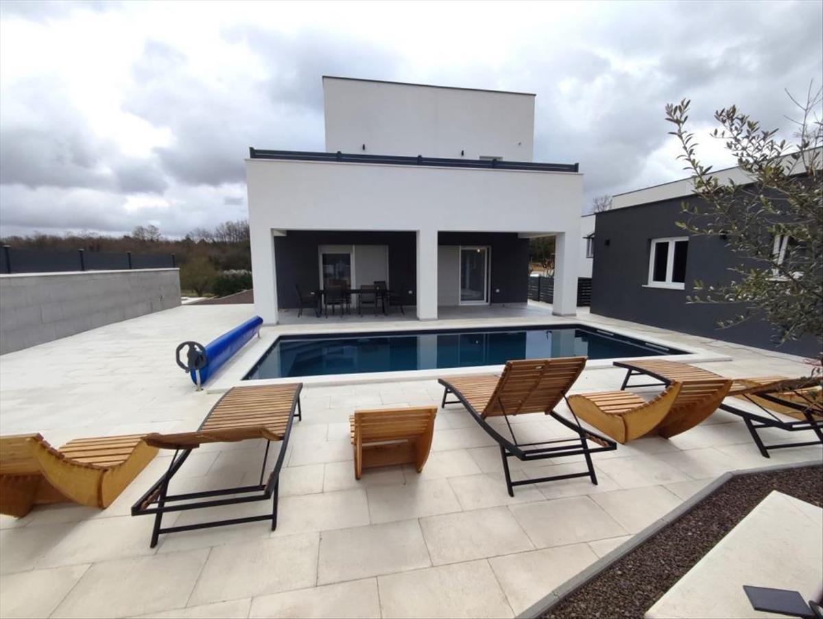 2022-Ben épült modern villát kínálunk egy Vodnjan melletti kisvárosban, csendes, természettel körülvett helyen, mely nyugalmat és magánéletet biztosít.