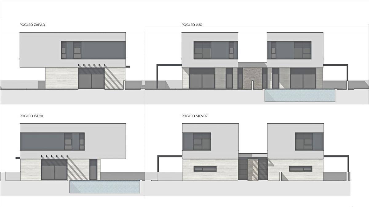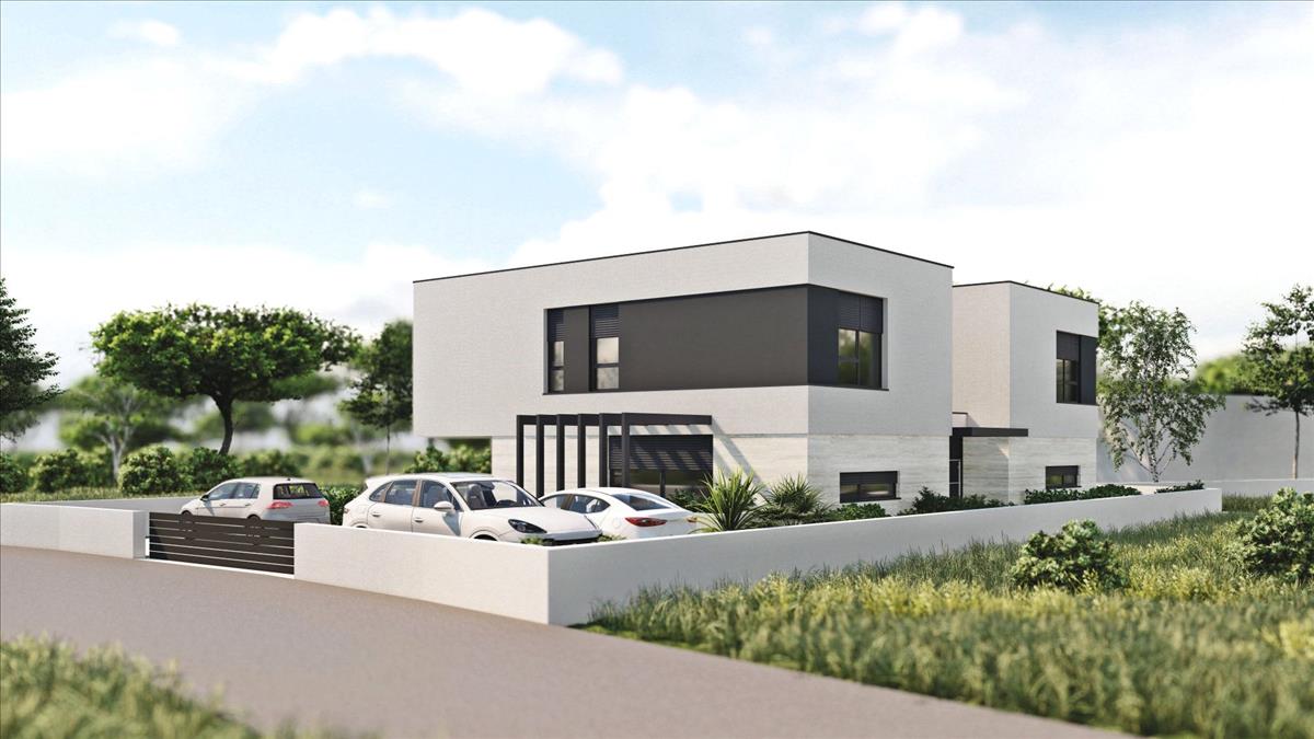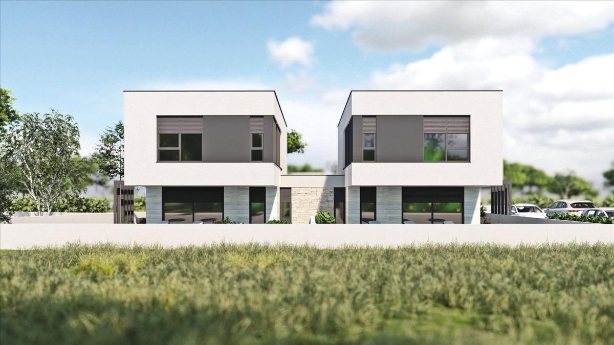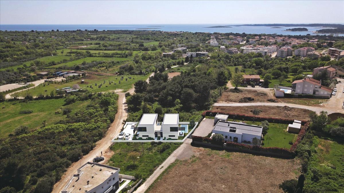 Modern építészetű ikervillák úszómedencékkel Medulinban, 1500 méterre a strandoktól. Az Isztriai-félsziget legdélibb pontján található a tengerparti ékszer - Medulin városa, az isztriai turizmus egyik leghíresebb képviselője. Ez a népszerű Medulin Riviéra központja, amely az őskori települések maradványaira épült, amely magában foglalja a környező nagyon vonzó helyeket; Premantura, Pješčana Uvala, Pomer, Vinkuran, Vintijan, Valbonaša és Banjole. Ez a terület a Medulin-szigetcsoporttal is büszkélkedhet 11 lakatlan szigettel és szigetecskével. Az egész idilli terület kivételes, jelentősen megőrzött környezeti értéket képvisel. a természet és a történelem ideális kombinációja évszázadok óta nem veszítette fényét. Ennek oka az enyhe mediterrán éghajlat, az impozáns természeti park, régészeti lelőhelyek, varázslatos kilátások, homokos és fehér kavicsos strandok kékeszöld öblökben, fenyvesek és modern halászfalvak, tele isztriai hagyományokkal, kulturális eseményekkel és dinamikus tevékenységek széles skálájával. Medulin csendes részén, modern építészetű, épülő ház eladó. Az ingatlanra az elhelyezkedés mellett a kivitelezés minősége is jellemző, mely hosszú távú elégedettséget és életminőséget garantál. a ház modern építészetével nem zavarja a környezetet, hanem a természeti környezet és a modern dizájn szinergiáját teremti meg, és lakóépületnek készült, két emeleten átnyúló lakóegységgel.