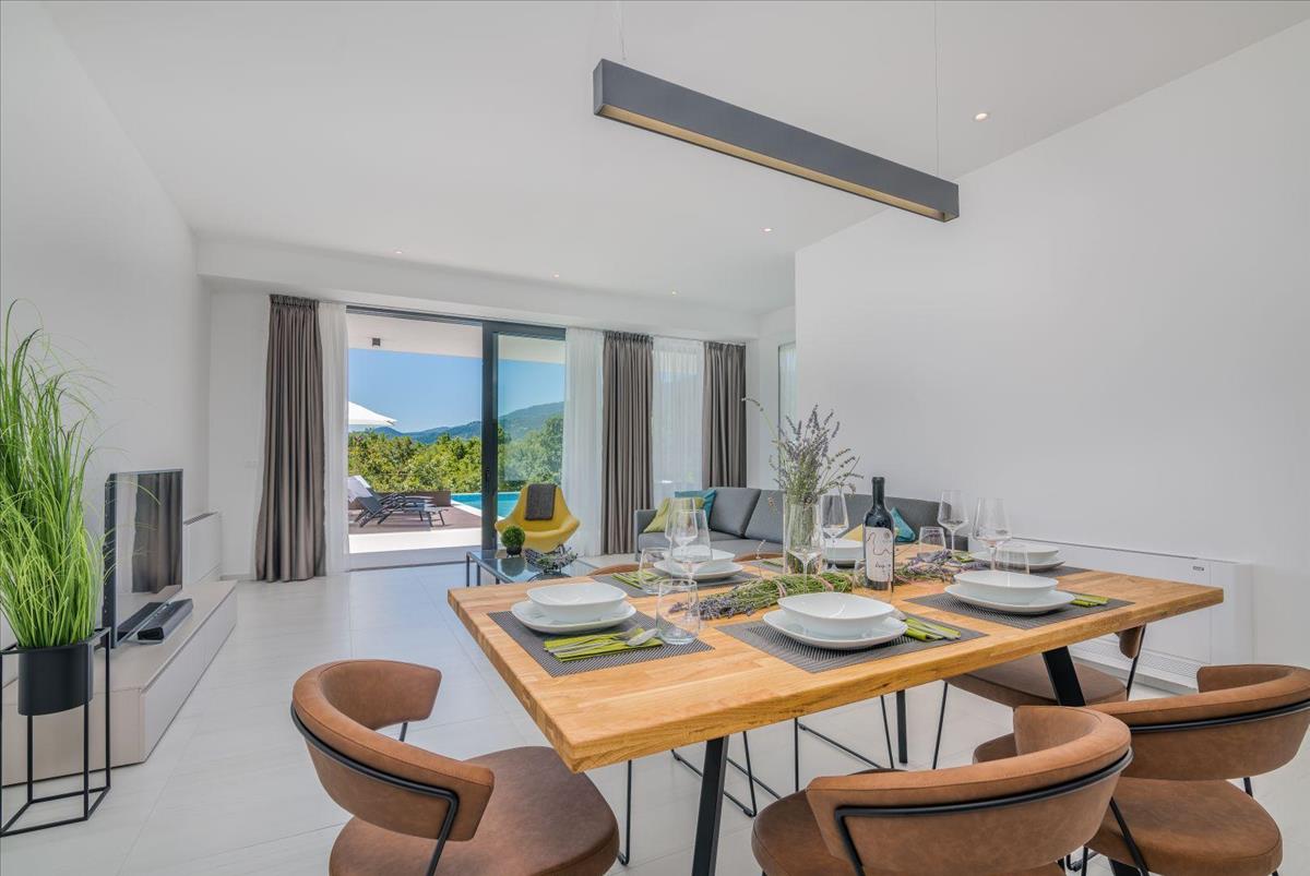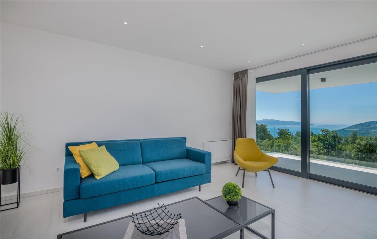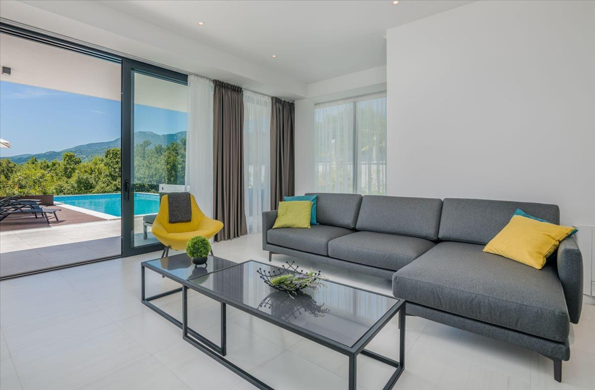 Örömmel kínáljuk Önnek ezt az új, lenyűgöző kilátást nyújtó ikervillát, amely Opatija varázslatos városának közelében található, 1500 méterre a tengertől.