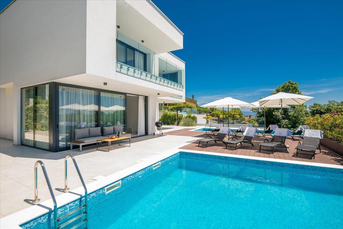 A gyönyörű Kvarner-öbölre néző és egy védett öbölben elhelyezkedő villa felejthetetlen tartózkodást kínál, ötvözi a kiváló minőségű építkezést a verhetetlen elhelyezkedéssel.