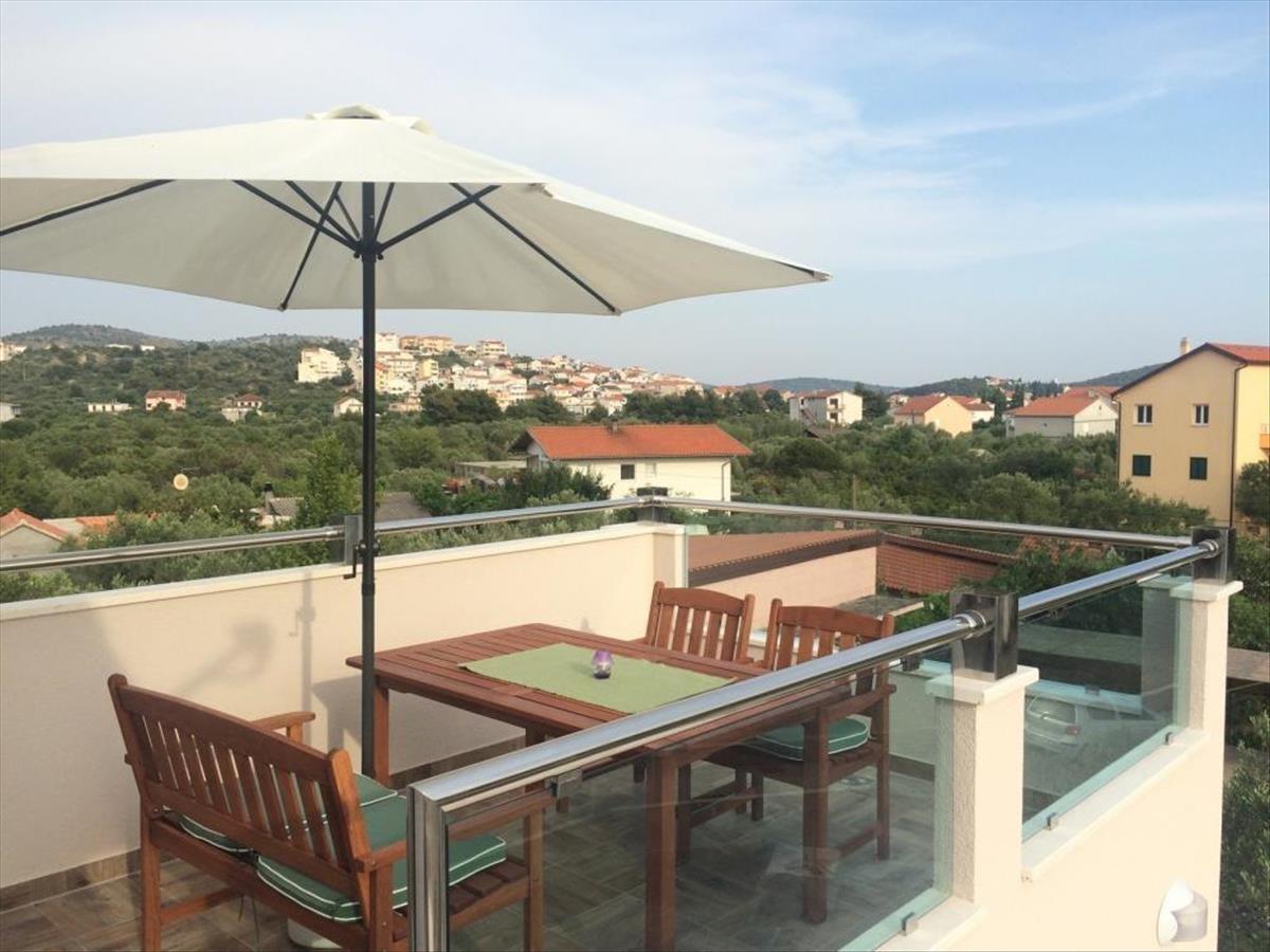 Az 1. emeleti A2-es apartmanban 2 hálószoba, teraszra nyíló konyha, fürdőszoba található. Az egyik szoba egy nagy fedett teraszra, a másik pedig egy fedett erkélyre nyílik. Mindkét teraszról gyönyörű kilátás nyílik Rogoznicára.
