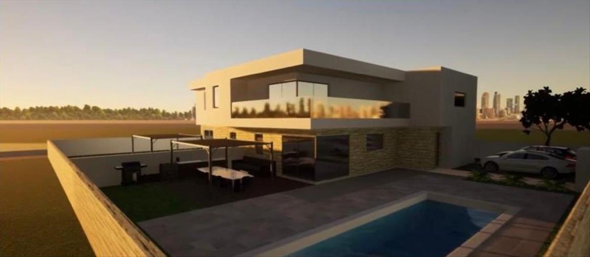 Ez a befejezéshez közeledő exkluzív villa kétszintes ikerháznak készült, mindegyik külön bejárattal, udvarral és kerttel, medencével.