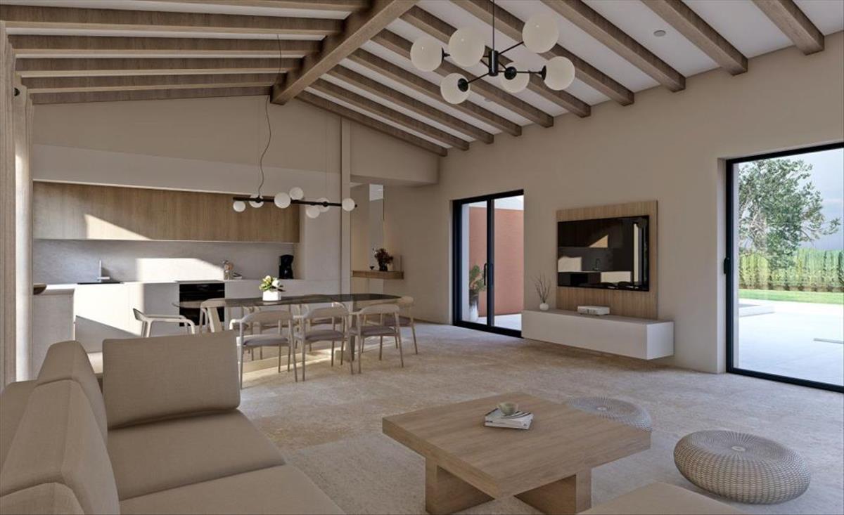 Gyengéd építészetével és színvilágával a ház zökkenőmentesen illeszkedik a közösségbe és a tájba, szinergiát teremtve a természeti környezet és a modern dizájn között. Ez egy 134, 70 négyzetméter alapterületű, egy emeleten elhelyezkedő egyetlen lakóegység. a nappalit, étkezőt és konyhát egyesítő nyitott teret, három fürdőszobás hálószobát, gardróbszobákat, vendég WC-t, mosókonyhát és technikai teret foglal magába. a ház hűtését/fűtését fan coil rendszer és padlófűtés biztosítja Panasonic hőszivattyún keresztül.