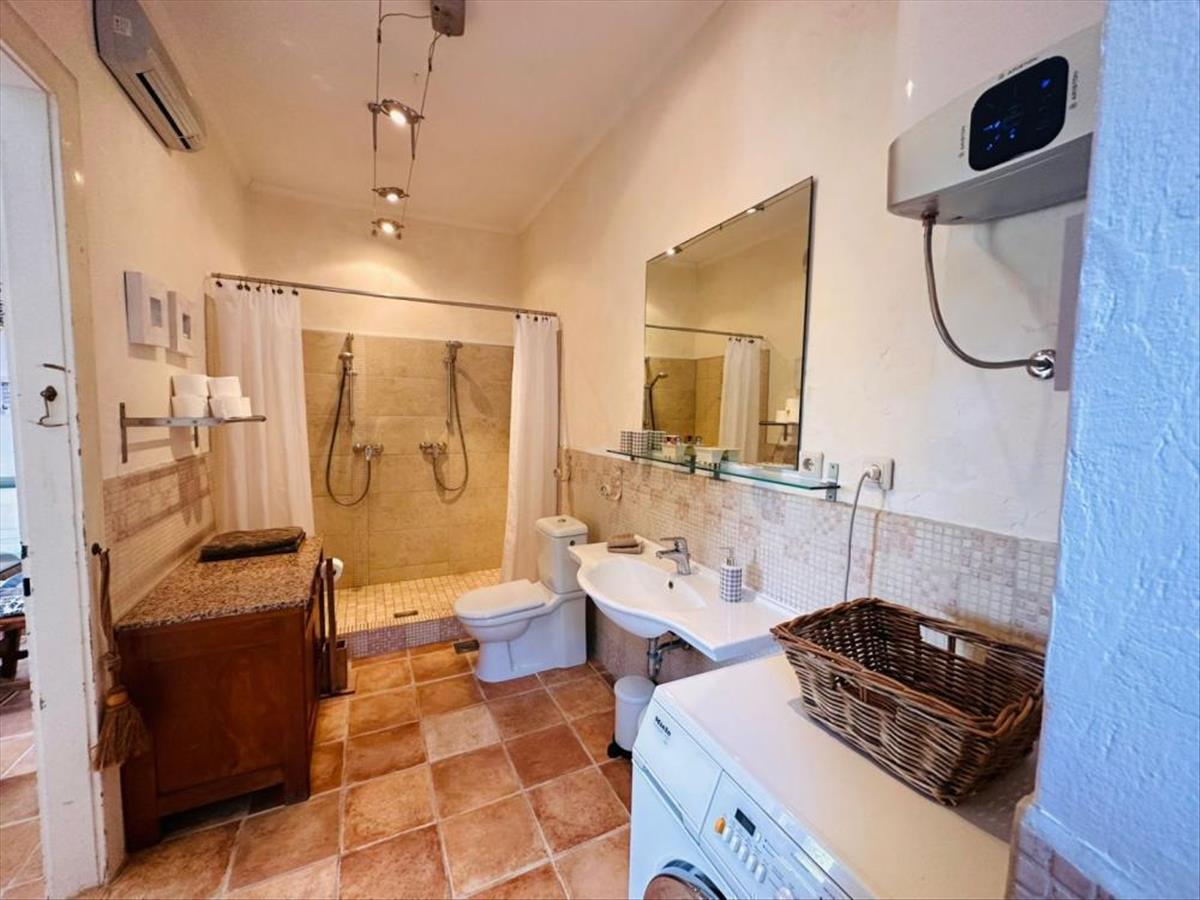 A felújított ház külső pvc zöld asztalos, szúnyoghálóval, központi fűtéssel és klímával rendelkezik. Az ingatlanhoz tartozik egy fedett terasz, egy kisebb terasz grillezővel és egy napozórész, melyeket zöld és mediterrán növényzet vesz körül. a tágas terasz alatt egy jelentős, 52 m2-es garázs található.
