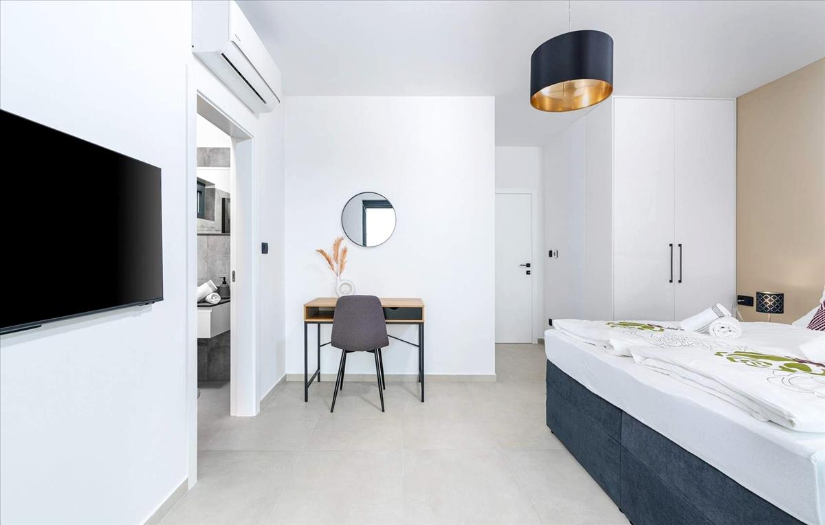 A ház egyetlen lakóegységként működik, két jól megtervezett és teljesen felszerelt szinten elosztva. a földszinten egy nyitott koncepciójú elrendezés található, amely egyesíti a konyhát, az étkezőt és a nappalit, hozzáféréssel egy fedett teraszhoz, amely nyári konyhával van felszerelve. Ezen a szinten vendég wc és műszaki helyiség is található. Az emeleti szinten három hálószoba, két fürdőszoba és egy terasz áll rendelkezésre, ahol élvezheti a csendes környezetet.