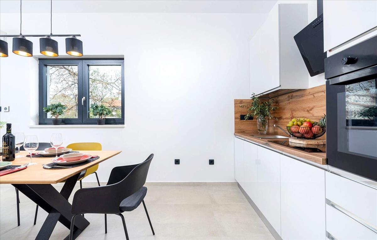 Modern ház medencével, amely mindössze 6 km-re található a tengertől Porečben, most eladó. Az ingatlan 140 m² lakóterületet kínál, és kiváló lehetőséget jelent bárki számára, aki kortárs otthont keres Istria egyik legkeresettebb régiójában.