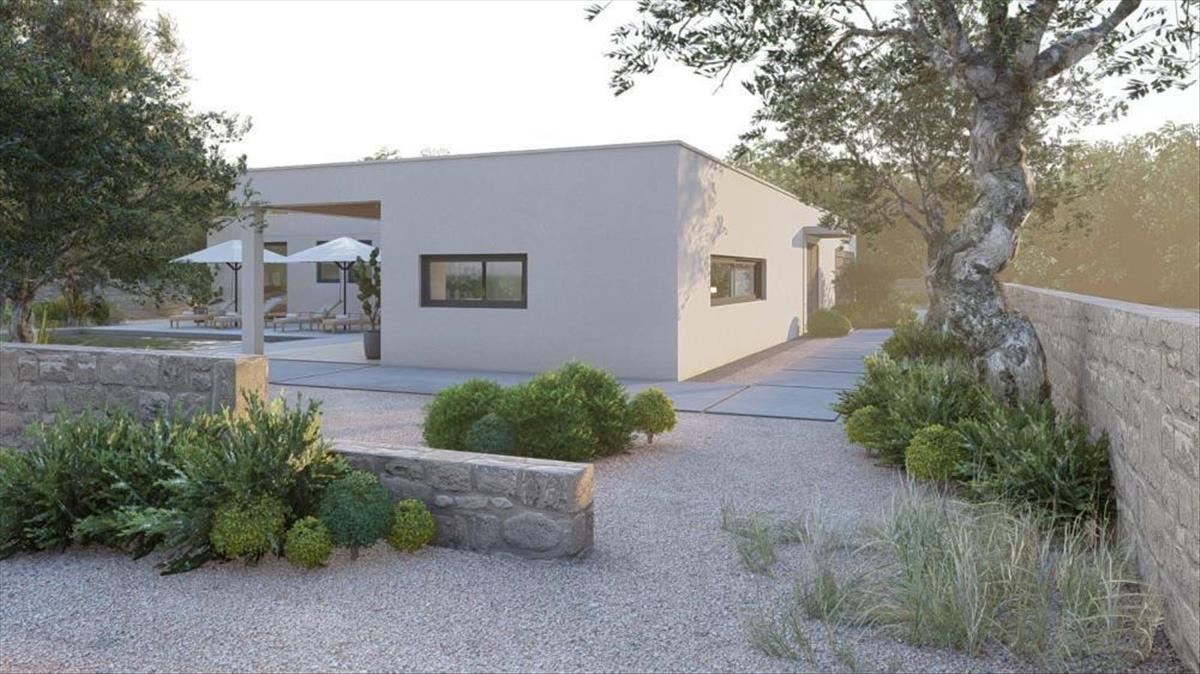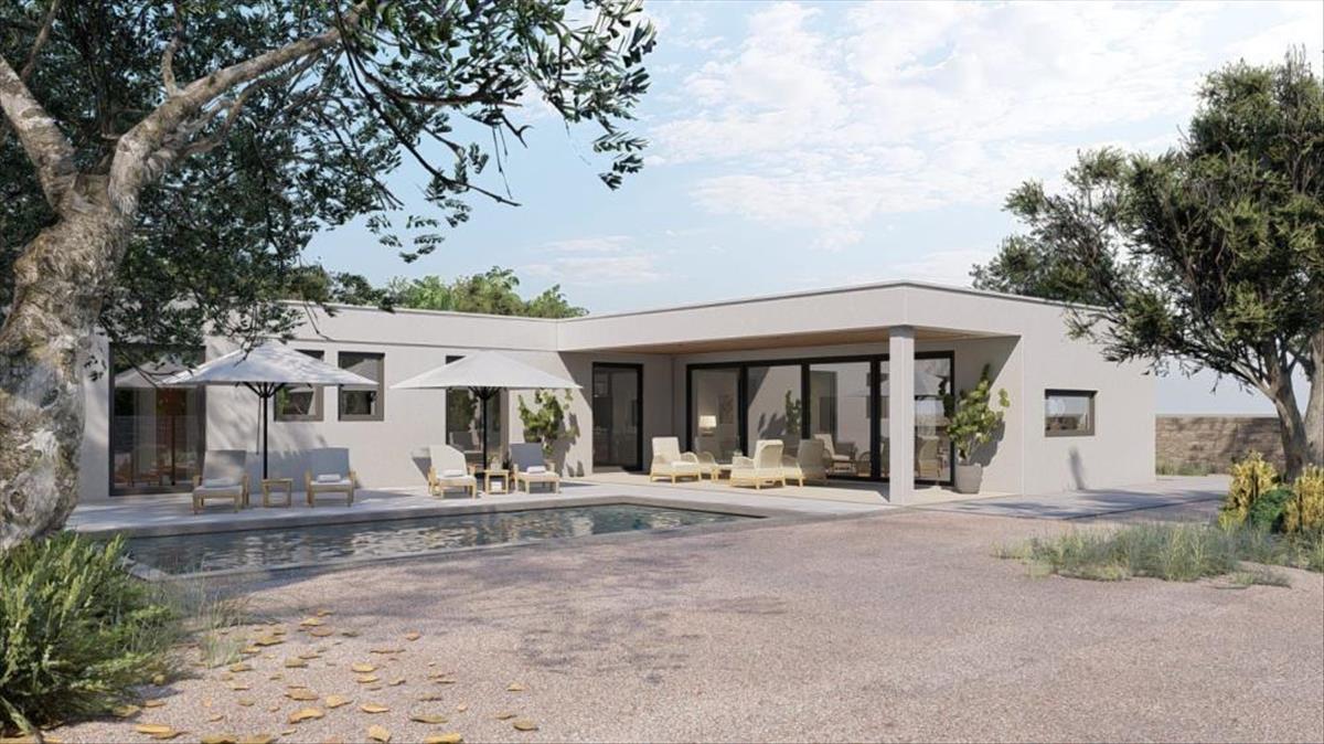 A ház egyszintes, 210 m2-es lakóterületű háznak készült, melyben három hálószoba saját fürdőszobával, egy vendég wc és egy nyitott terű koncepciókonyha, étkező és nappali található, melyből egy fedett teraszra nyílik a nyári terasz. Konyha.