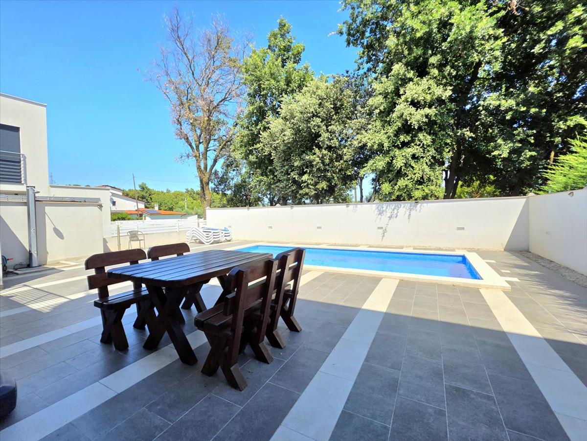 A második, legfelső emeleten egy külön mester hálószoba található, saját fürdőszobával és egy lenyűgöző fedett terasszal, amely ülőhellyel van felszerelve, ami a maximális magánélet tökéletes menedéke a pihenéshez. a kert leírása:a ház kertje 350 m² területű, teljesen kerített és parkosított, valamint saját gyalogos bejárattal rendelkezik. a medence és a napozóterület mellett van egy segédépület is, amely nyári konyhaként és kültéri WC-ként szolgál, azaz mindent tartalmaz, amire szükség van a tökéletesen eltöltött nyári napokhoz. a kert előtt két parkolóhely található, míg az utcán elegendő hely van több autó parkolására. További információk és felszereltség* Az ingatlan teljesen felújítva 2022-ben, teljesen bútorozva kerül értékesítésre. * Minden szobában légkondicionáló berendezés van a fűtéshez és hűtéshez, és lehetőség van pellet- vagy fatüzelésű kályha telepítésére is. * Minden fürdőszobának van ablaka, és pvc nyílászárók redőnyökkel és minőségi kerámiák dominálnak az egész házban. * a tulajdonjog 1/1, tehermentes, megfelelő dokumentációval, használati engedéllyel, valamint legalizált medencével és segédépülettel rendelkezik. Alap információk:* Ház mérete: 185 m²* Kert mérete: 350 m²* Összesen: 4 hálószoba, 4 fürdőszoba + 1 kültéri wc* Magán medence 24 m²* 2 parkolóhely tökéletes választás családnak vagy befektetésneka csendes és nyugodt elhelyezkedésének, kiváló közlekedési kapcsolataival és Pula, Medulin és Premantura közelségével ez az ingatlan ideális mind az egész évben tartó lakhatáshoz, mind a jövedelmező turisták bérléséhez. Ref: RE-U-40477