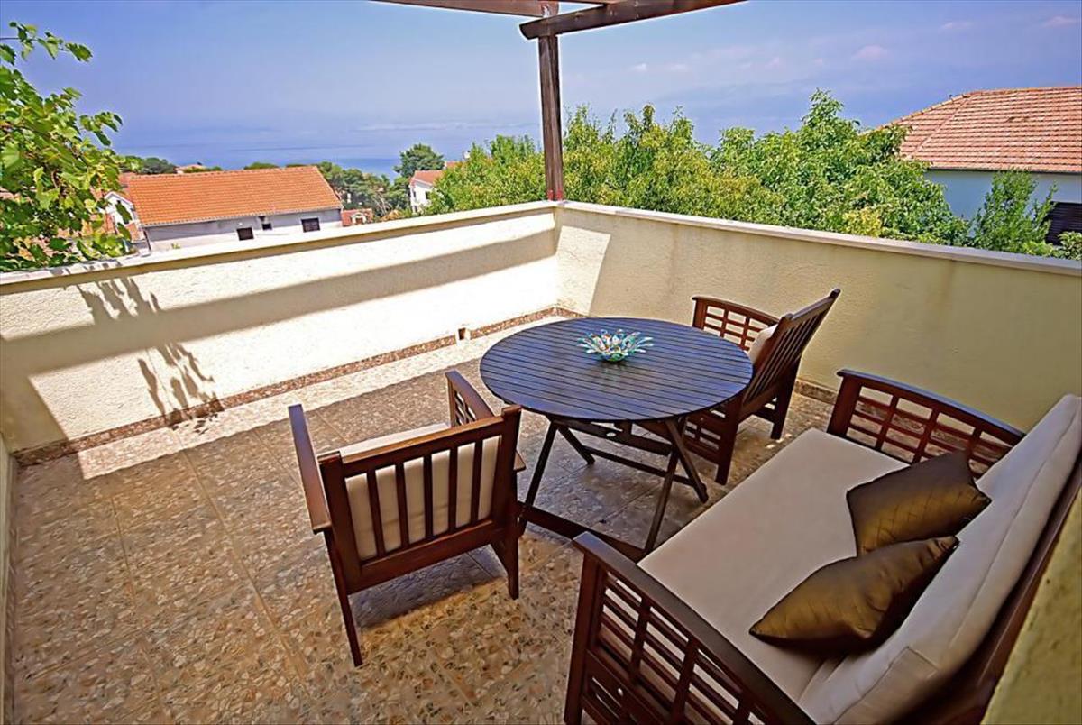 Szép villa medencével Sutivanban, Brac szigetén, mindössze 250 méterre a tengertől eladó!Tengerre néző kilátás a felső emeletről.