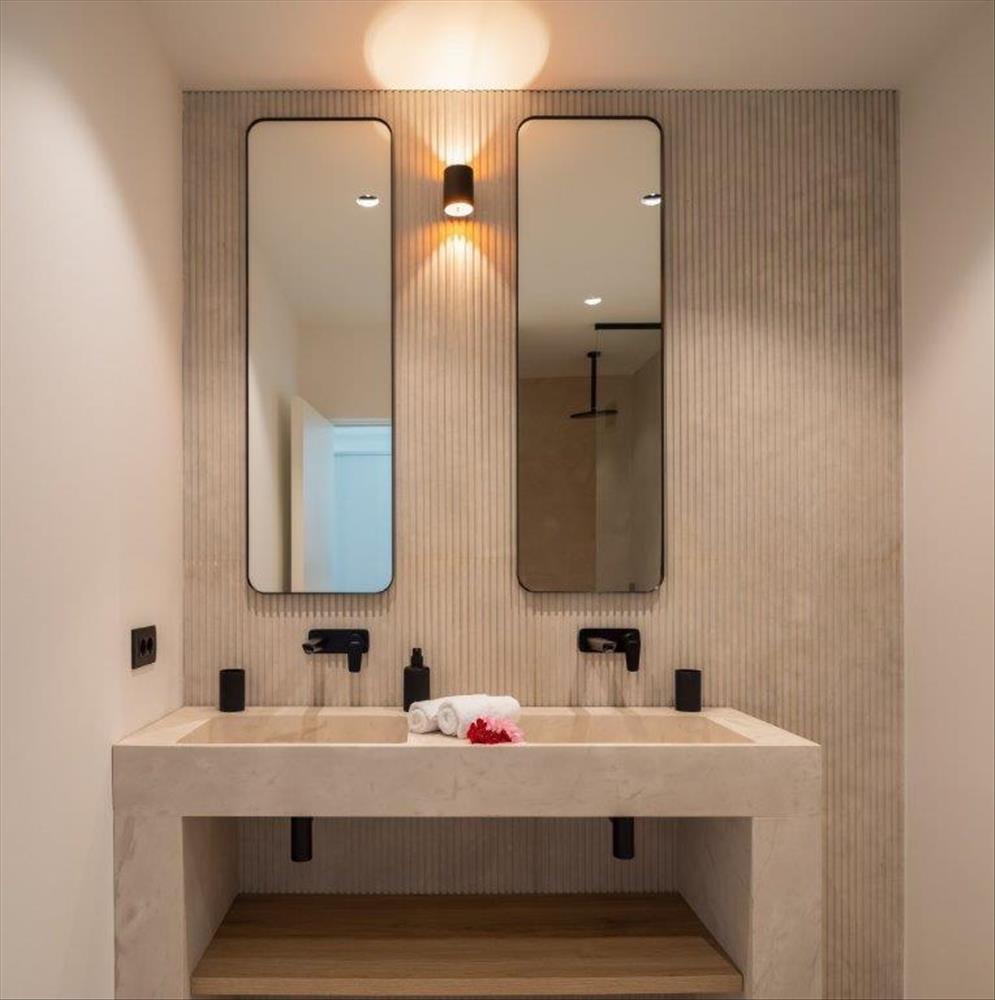Ez a modern műalkotás teljes magánéletet biztosít, és minden szükséges luxussal fel van szerelve. Modern konyhával, tágas nappalival, négy hálószobával, mindegyik saját fürdőszobával, további WC-vel, szaunával és edzőteremmel rendelkezik.