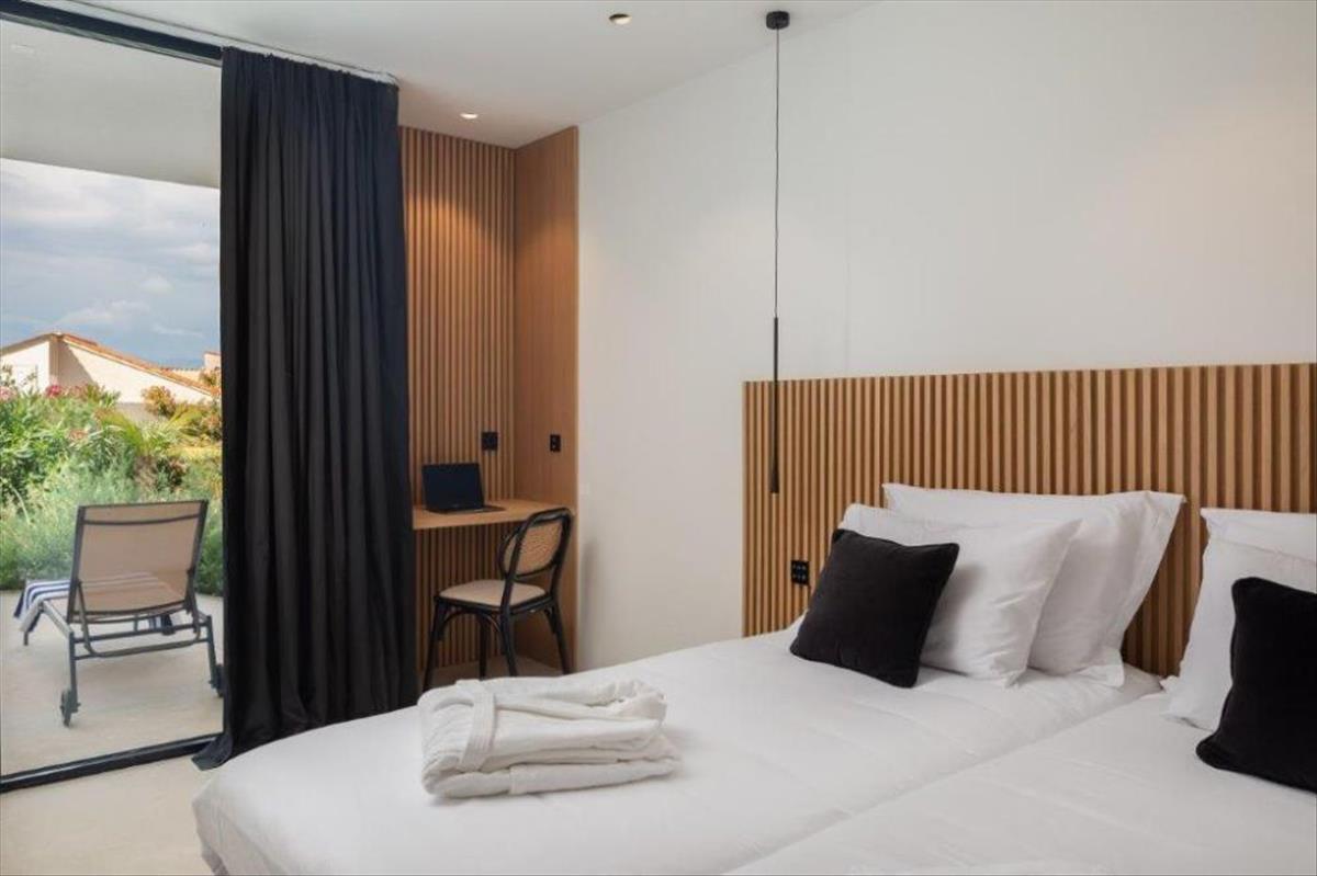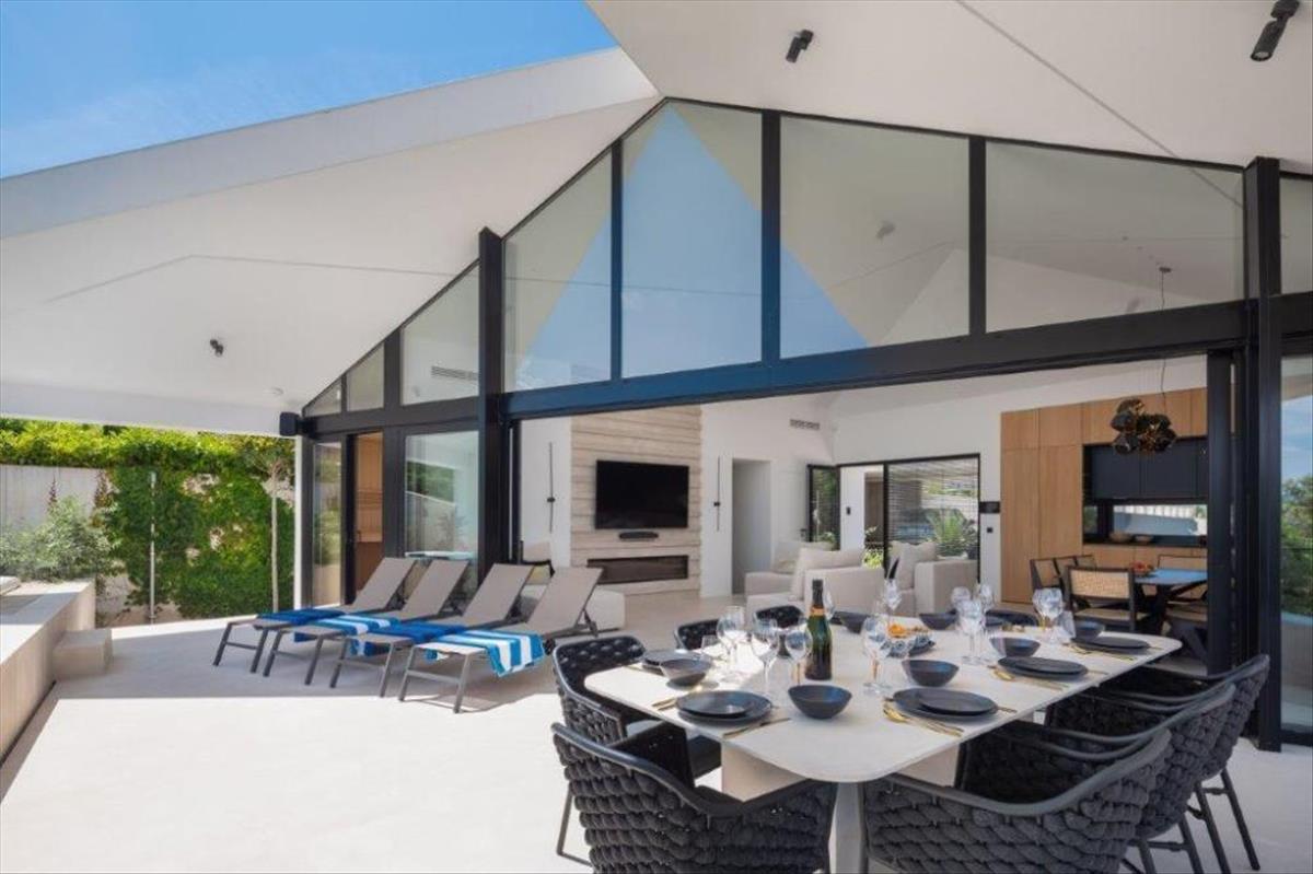 Ez a villa eláll a lélegzetétől a modern és innovatív építészetével, amely lehetővé teszi a rengeteg természetes fényt minden helyiségben. Minden hálószobából ki lehet jutni az udvarra, ahol egy gyönyörűen parkosított kert található, különféle mediterrán növényekkel.