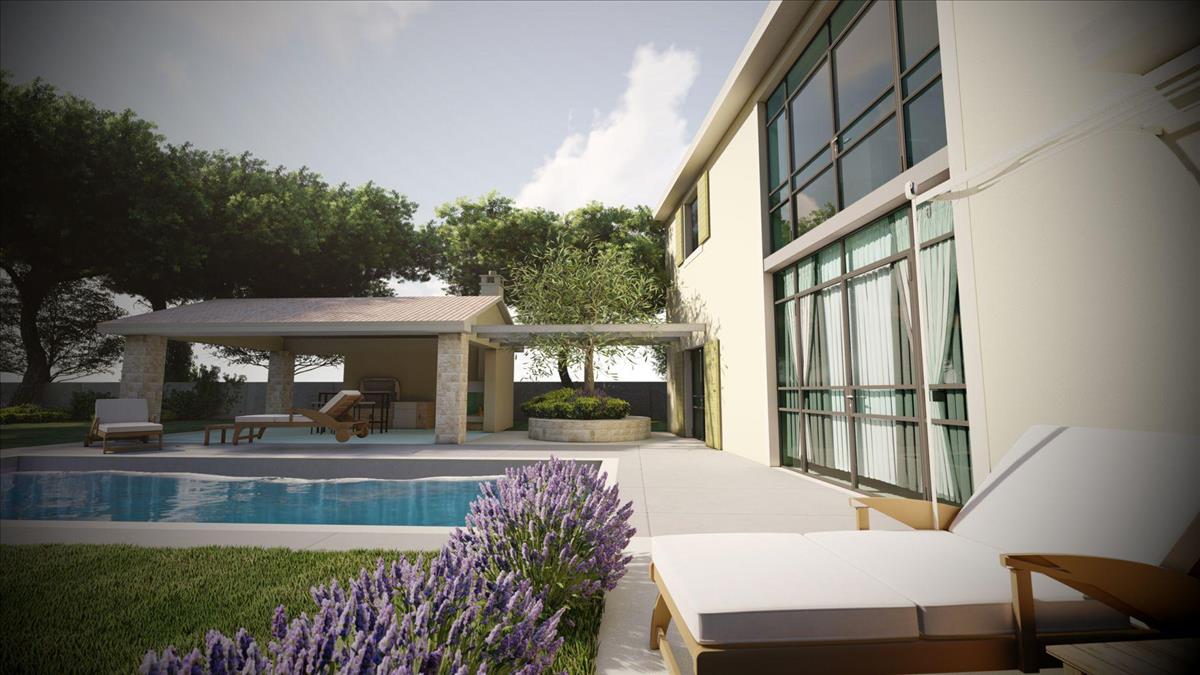 A történelmi Svetvinčenat város közelében, az Istriai-félsziget csendes belső részén található ez az újonnan épült, medencével rendelkező villa, amely kivételes lehetőséget kínál azoknak a vásárlóknak, akik magán mediterrán rezidenciát vagy nagy potenciállal rendelkező befektetési ingatlant keresnek Horvátországban. Az építési zóna szélén helyezkedik el, és természet veszi körül, így a villa ritka kombinációját kínálja a magánéletnek, a modern dizájnnak és az Adriai-tengerhez való közelségnek, amely mindössze körülbelül 21 kilométerre található. a bájos reneszánsz város, Svetvinčenat, széles körben a közép-Istria kulturális gyöngyszemeként ismert. Gyönyörűen megőrzött történelmi légköréről híres, a város népszerű úti cél lett a látogatók számára, akik az autentikus isztriai örökséget és a vibráló kulturális eseményeket szeretnék megtapasztalni. a város szívében található a híres Placa nevű reneszánsz tér, amelyet a lenyűgöző Morosini-Grimani kastély ural, amely Istria legjobban megőrzött erődítményei közé tartozik, és a város szimbolikus jelképe. Az év folyamán Svetvinčenat számos neves kulturális fesztiválnak és eseménynek ad otthont, beleértve a népszerű Középkori Fesztivált, a Sajtfesztivált, a Táncfesztivált és a nemzetközileg elismert Nonverbális Színház Fesztivált, amelyek mind vonzzák a látogatókat Európa-szerte, és hozzájárulnak a régió növekvő turisztikai vonzerejéhez. Csak egy rövid távolságra a történelmi központtól, ez az elegáns villa, amely jelenleg építés alatt áll, körülbelül 260 négyzetméternyi lakóteret kínál, amelyet a modern kényelem és funkcionalitás jegyében terveztek. Az építészeti koncepció a hagyományos mediterrán elemeket ötvözi a kortárs lakhatási normákkal, így az ingatlan egyaránt alkalmas magán családi rezidenciának vagy luxus nyaralóvillának az egyre bővülő isztriai turisztikai piacon. a villa földszintjén egy tágas, nyitott nappali található, amely integrálja a nappalit, a konyhát és az étkezőt egy harmonikus környezetbe, amely tele van természetes fénnyel. Ez a szint egy kényelmes hálószobát is magában foglal saját fürdőszobával, egy külön vendég WC-t, egy kazánházat, valamint egy segédépületet, amely több funkcionális célt szolgálhat, például tárolást, műszaki teret vagy további szolgáltató területet. a földszint nyitott és légies kialakítása barátságos légkört teremt, amely ideális a mindennapi élethez és a vendégek szórakoztatásához. a villa emeletét privát alvóterületnek tervezték, és két tágas hálószobát tartalmaz, mindkettő saját fürdőszobával rendelkezik. a kialakítás biztosítja a kényelmet és a magánéletet a lakók és a vendégek számára, így az ingatlan különösen alkalmas luxus turisták számára, ahol magas szintű magánéletet és kényelmet várnak el. a villát modern rendszerekkel szerelik fel, amelyek célja az energiahatékonyság és az egész évben tartó kényelem biztosítása. a fűtést és a hűtést inverteres légkondicionáló egységek biztosítják, míg az ingatlan kiváló minőségű pvc ablakkeretekkel rendelkezik, a vásárló preferenciáitól függően lehetőség van fa nyílászárókra is. a belső tér kerámia padlólapokat tartalmaz a fő lakóterületeken, parkettát a hálószobákban a melegség és elegancia érdekében, valamint speciális csempéket a medence területén. Az első fázisban padlófűtés telepítése van tervben, valamint a napkollektorok és egy napelem-telep előkészítése, amely lehetőséget biztosít a jövőbeli energiafüggetlenségre és a csökkentett üzemeltetési költségekre. Az ingatlan körülbelül 897 négyzetméteres tágas telken helyezkedik el, amelyet gondosan parkosítanak, hogy vonzó kültéri környezetet teremtsenek. Egy 40 négyzetméteres nagy medence lesz a kert középpontja, zöld gyep kíséretében, automatikus öntözőrendszerrel felszerelve. a kültéri tér több privát parkolóhelyet is tartalmaz, biztosítva a kényelmet mind a tulajdonosok, mind a vendégek számára. Az egész kert teljesen bekerített lesz, biztosítva a magánéletet és a biztonságot, a bejáratot pedig automatikus kapuval szerelik fel a könnyű gépjárműhozzáférés érdekében. Maga a villa délnyugati tájolású, lehetővé téve a lakók számára, hogy a nap folyamán optimális napsütést és gyönyörű naplementéket élvezzenek a környező vidéken. Az ingatlan egyik legértékesebb aspektusa egyedi elhelyezkedése a falu szélén, a kijelölt építési zóna végén. Ez a hely garantálja a zavartalan környezetet és a magas szintű magánéletet, mivel közvetlenül az ingatlan mellett nem várható további fejlesztés. a csendes természeti környezet, párosulva Istria tengerparti célpontjaival, különösen vonzóvá teszi ezt a villát azok számára, akik békét keresnek anélkül, hogy feláldoznák a tengerhez és a fő turisztikai látnivalókhoz való hozzáférést. a közép-Istria iránti erős keresletnek köszönhetően a luxus nyaralóvillák iránt az ingatlan kiváló lehetőséget kínál a turisztikai befektetésre. a tengerparthoz közeli csendes vidéki helyszíneken található, privát medencés villák a legkeresettebb szállástípusok közé tartoznak a régiót felfedező látogatók körében, így ez az ingatlan ideális a rövid távú bérleti jövedelemhez az egyre bővülő isztriai turisztikai piacon. a feltüntetett ár a bútorozatlanul átadott befejezett villára vonatkozik, lehetővé téve a jövőbeli tulajdonos számára, hogy a belső teret saját ízlése vagy bérleti stratégiája szerint tervezze és bútorozza. Lehetőség van az ingatlan megvásárlására a roh-bau építési fázisban is, további rugalmasságot