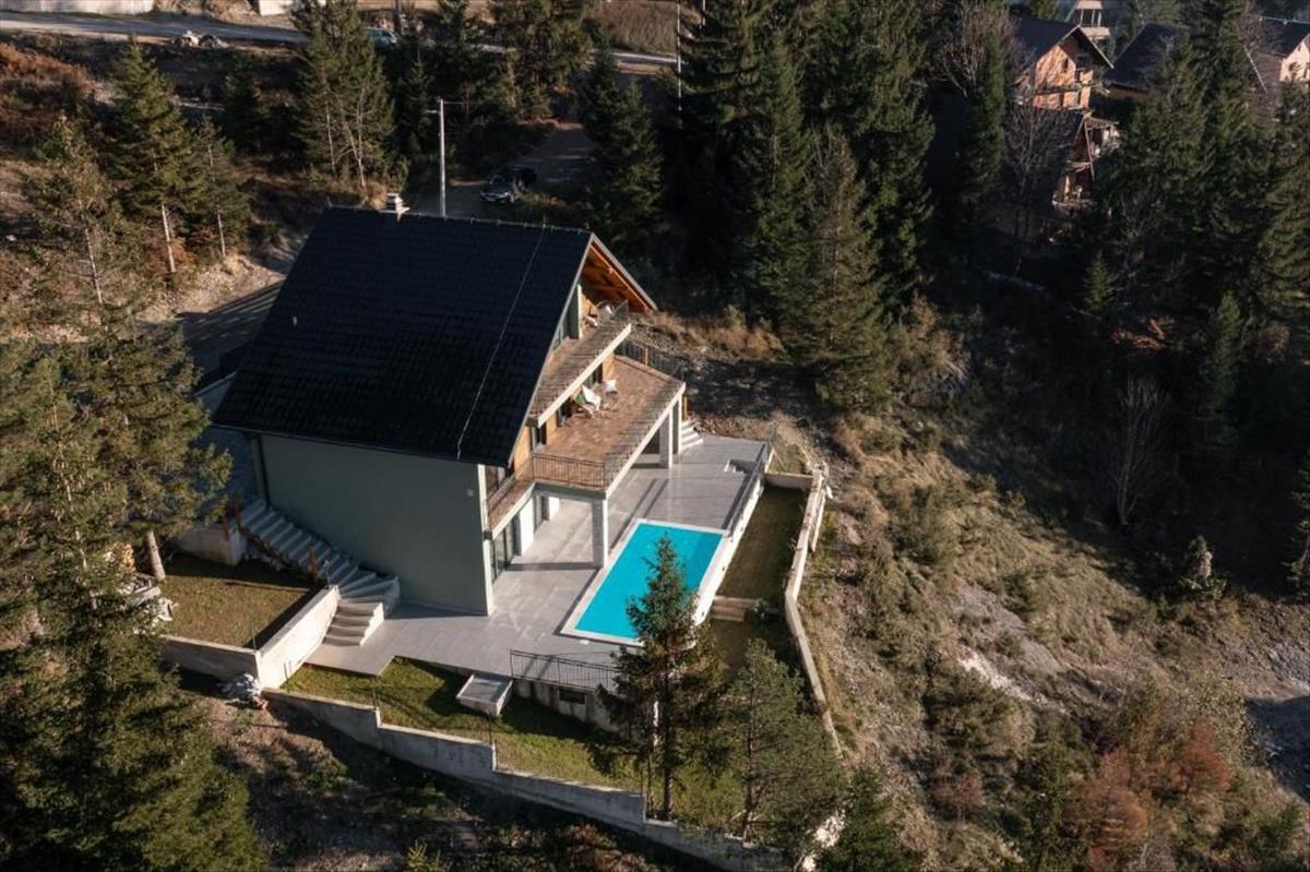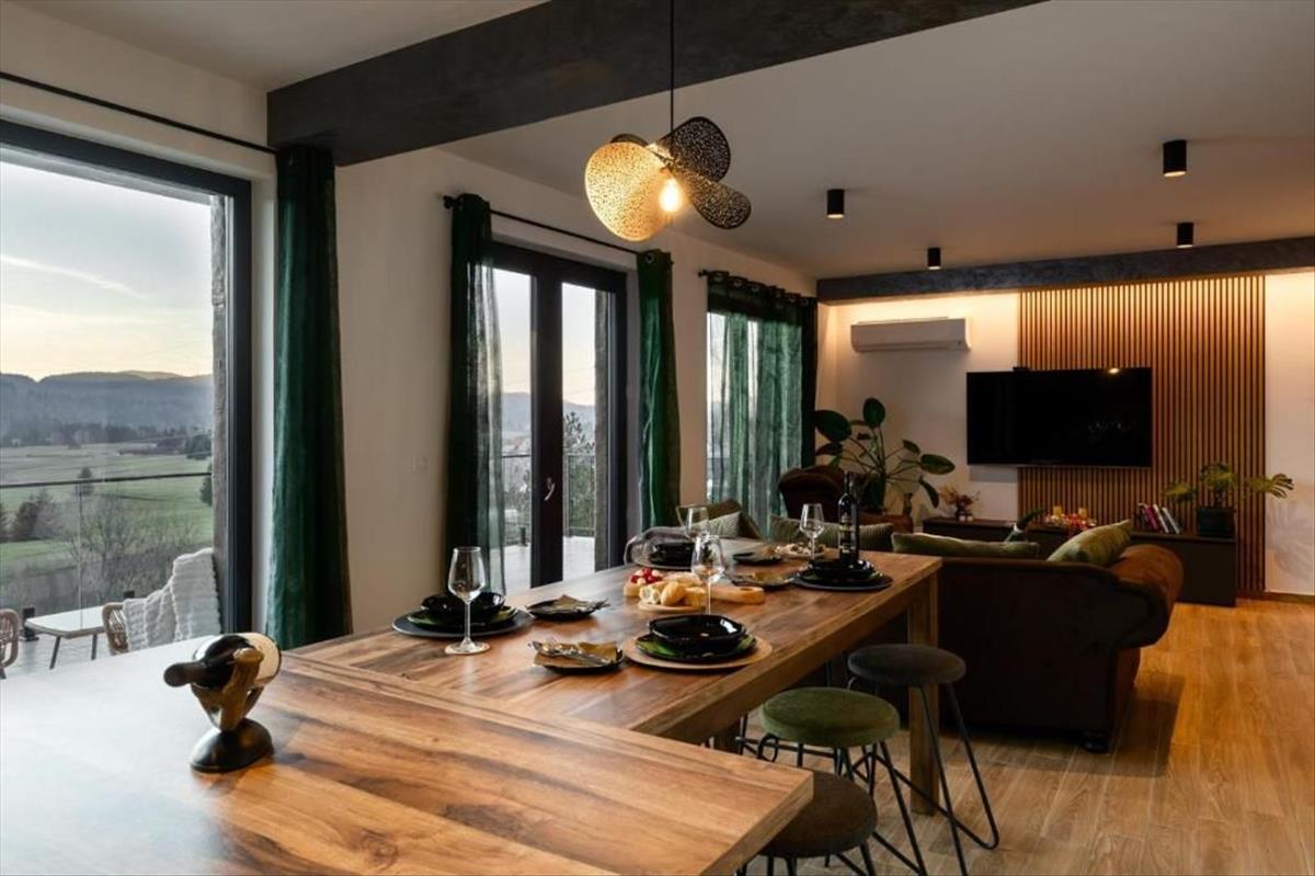 Eladó egy csodálatos, egyedi villa Ravna Gorában, Gorski Kotar szívében. Kiváló helyen elhelyezkedve, a villa panorámás kilátást nyújt a völgyre, a környező hegyekre és a buja zöld növényzetre. 2023-Ban készült el, teljesen bútorozva és a piacon elérhető legmagasabb színvonalon felszerelve kerül értékesítésre.
