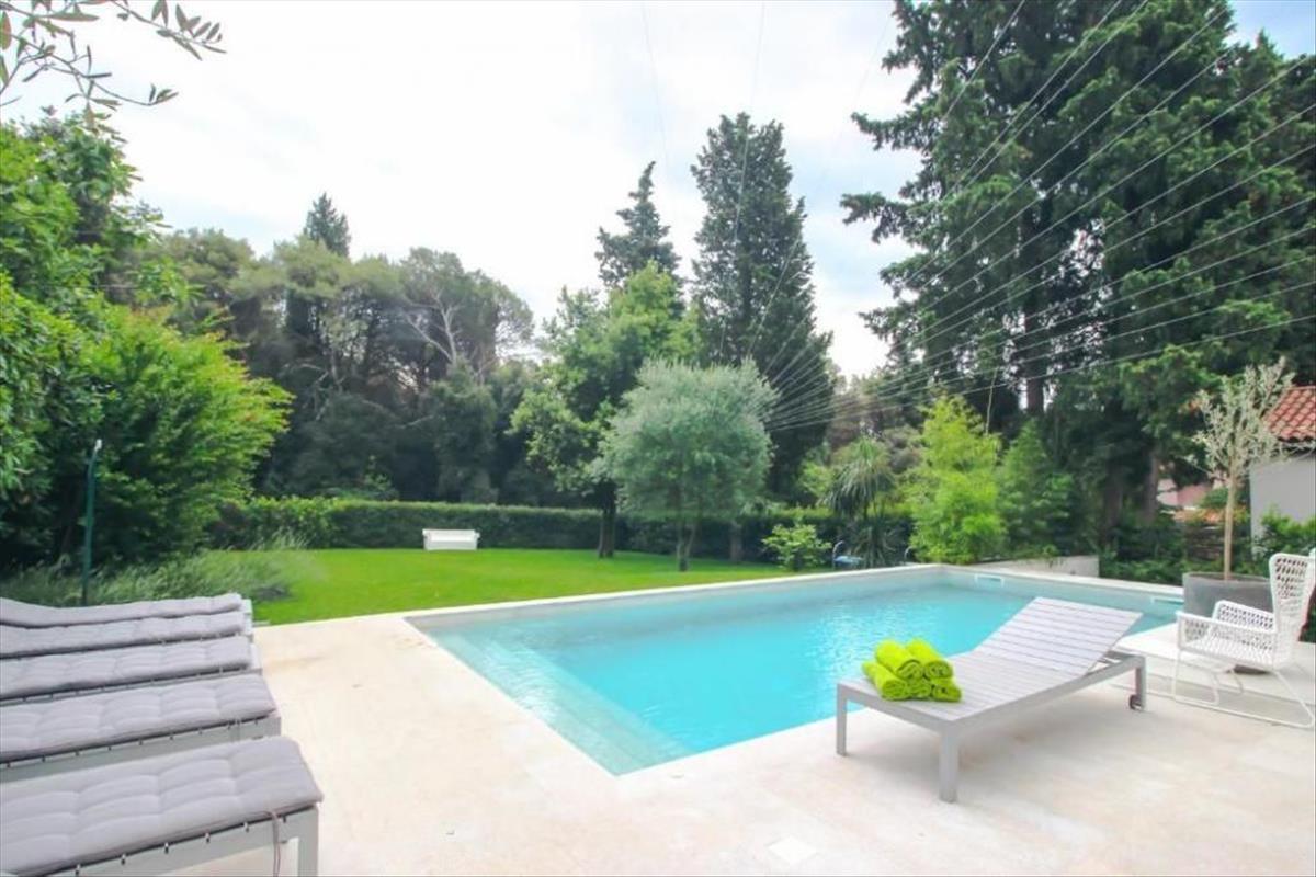 A szabadtéri területen egy teljesen bekerített zöld kert található, fűtött medencével és pezsgőfürdővel, ahol teljes magányban élvezheti az isztriai napsütést.