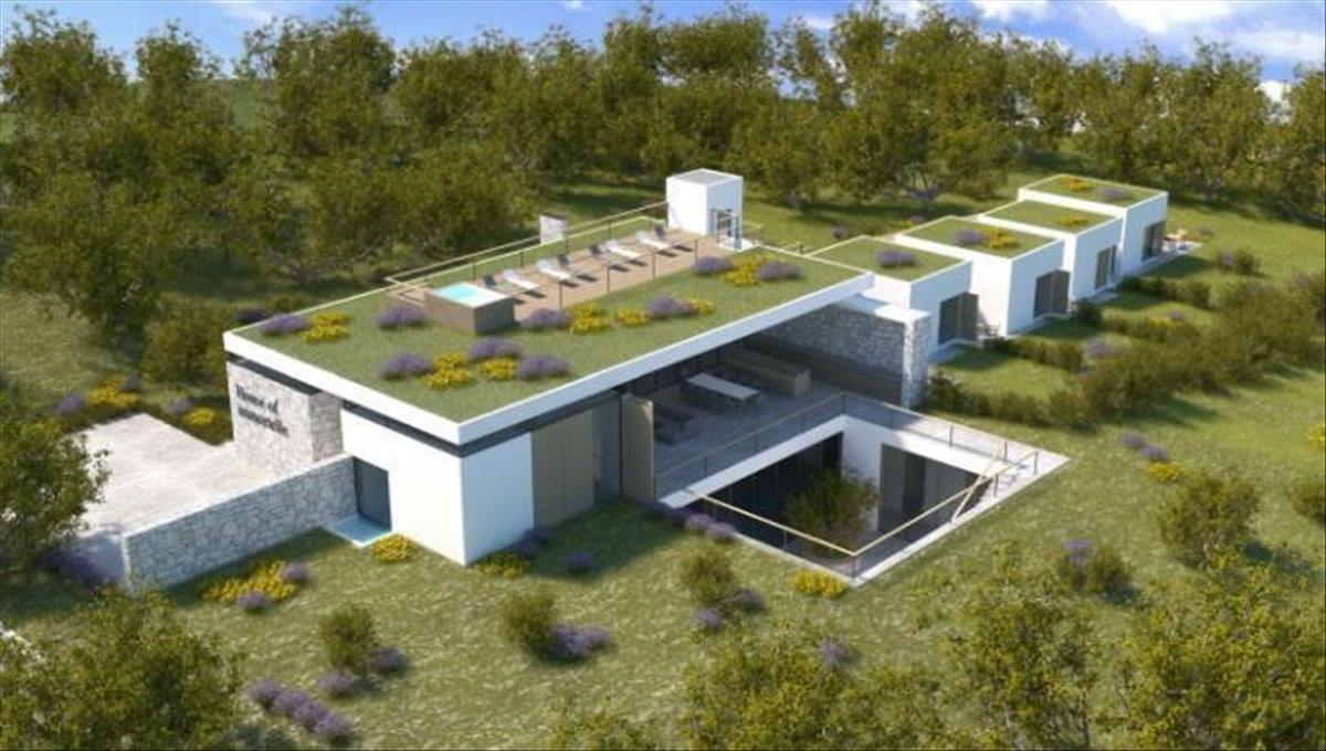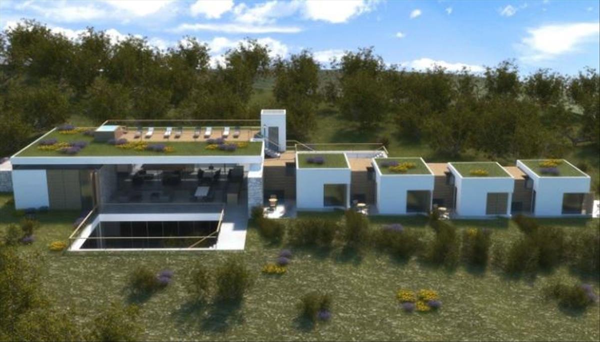 1) Luxus családi nyaraló a földszinten 5 hálószobával és kiszolgáló helyiségekkel, wellness fedett uszodával, konyhával, alternatív nappalival és olajtermeléssel az alagsorban;