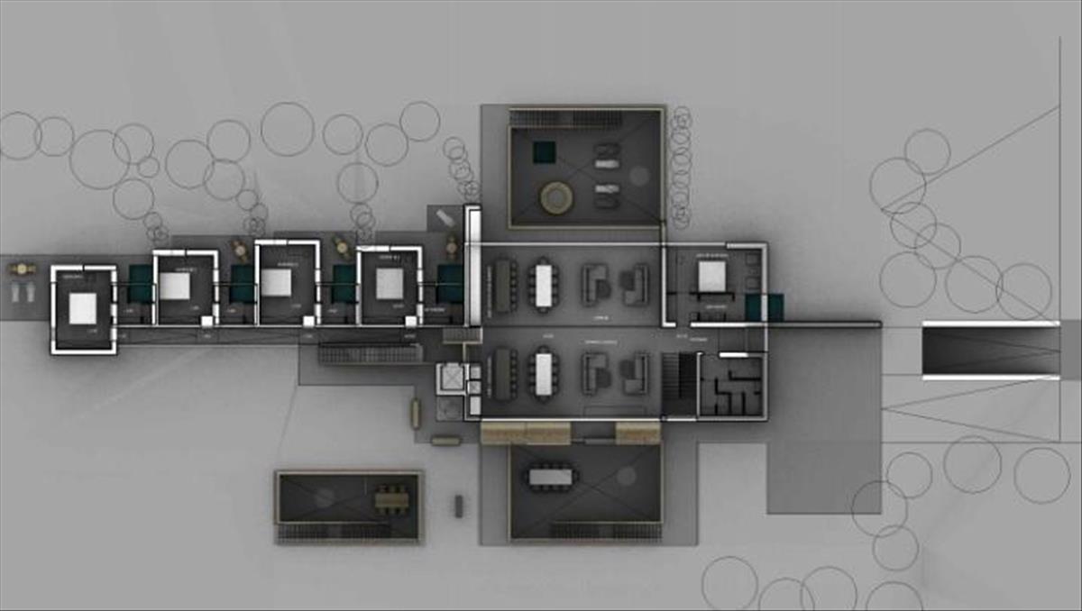 A 30. 000 Nm-es telek maximalizálása érdekében kialakítottunk egy szabadtéri úszómedencét, egy teraszos pezsgőfürdőt, egy étkező- és társalgó teraszt, valamint egy kis szabadtéri vetítős amfiteátrumot, melyek mindegyike a főépülettől úgy távolodott el, hogy Ön mentálisan elkülönüljön az épülettől. Házhoz, és érezze az elzártság, a béke és a természethez való kapcsolódás érzését.