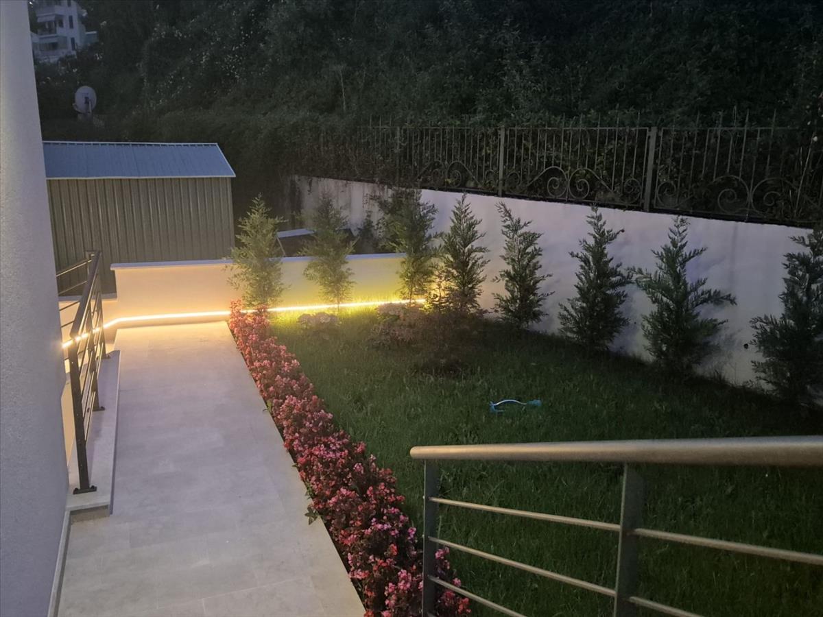 A villa egy 600 m²-es, parkosított és zárt telken helyezkedik el, tágas bejáróval és négy autó számára parkolóhellyel. Minden egységnek saját bejárata és dedikált tárolóhelyisége van, biztosítva a teljes függetlenséget és kényelmet.