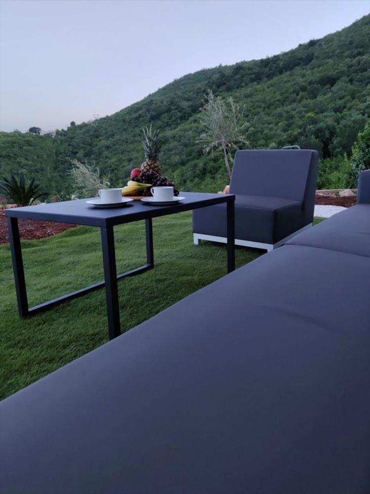 A birtok 100 m2 lakóterületet kínál egy 815 m2-es telek területén, ötvözve a modern építészetet, a magas építési minőséget és egy kivételes természeti környezetet, nyitott kilátással a tengerre és a környező zöld területekre.