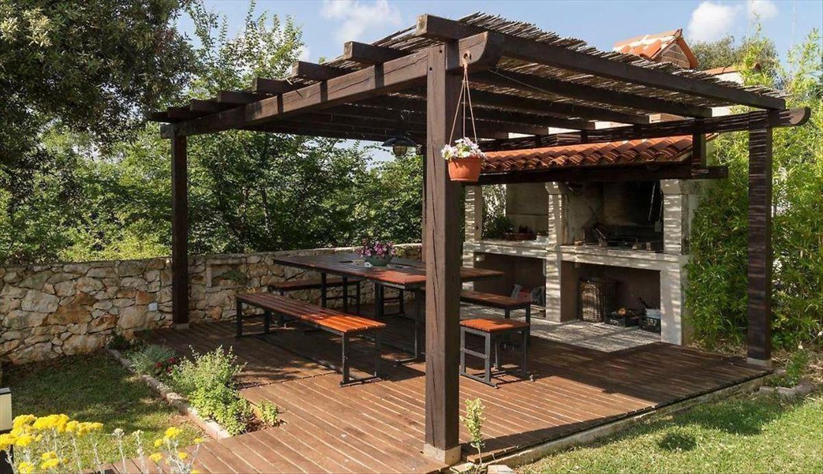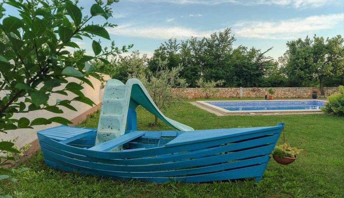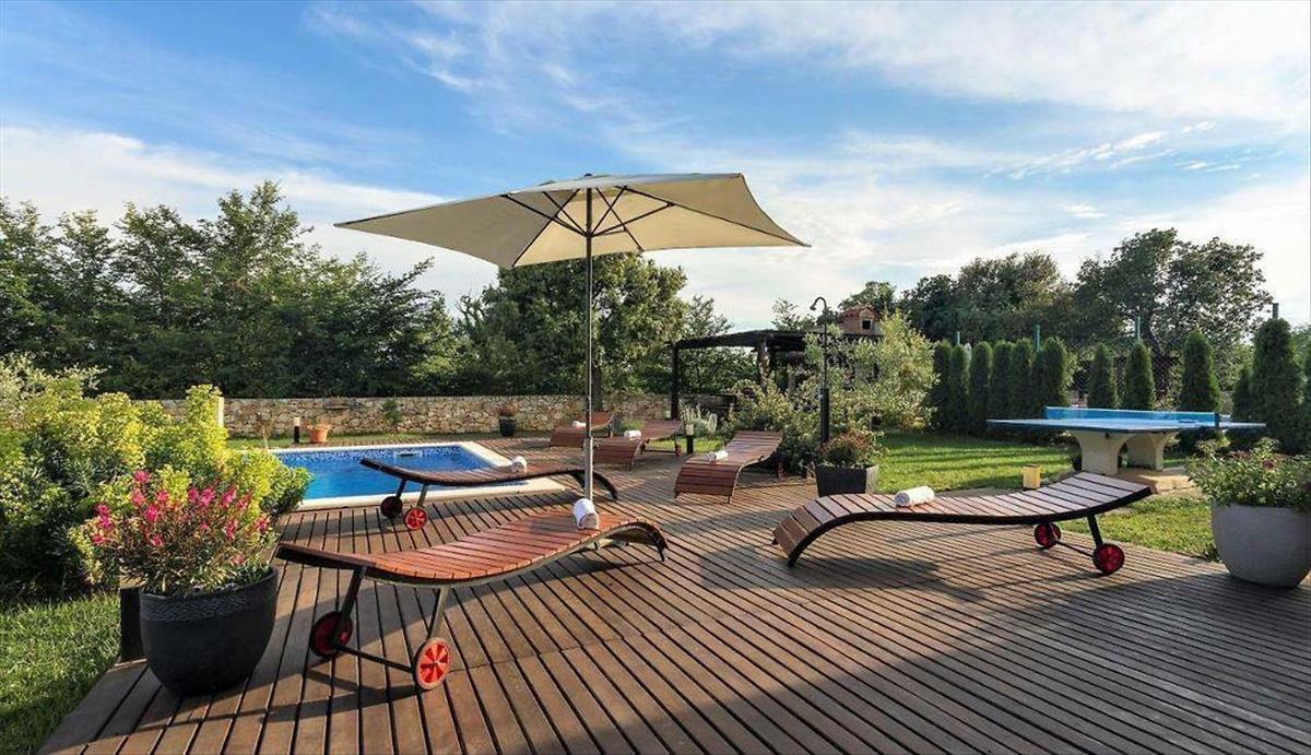 A parkosított és karbantartott kertben 6x8-as úszómedence, napozóterasz, mediterrán növényekkel díszített kert, kerti ház, zöldövezet és 4 gépkocsi beálló található. Ez a gyönyörű családi ház ideális lehetőség egy békés családi élet újrakezdésére vagy a befektetés biztonságos megtérülésére turisztikai célú bérbeadás révén.