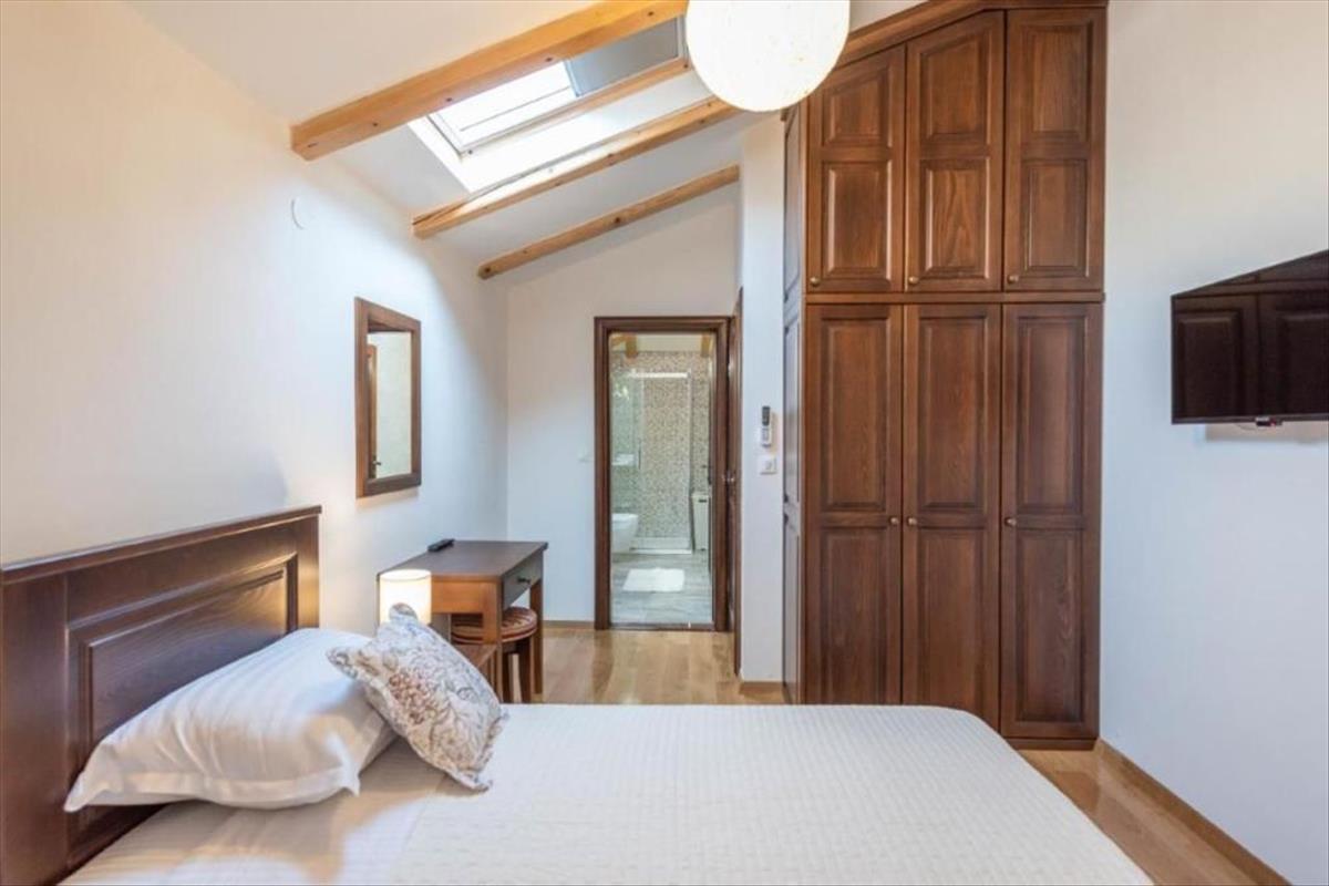 Az ingatlan minőségi anyagokkal teljesen felszerelt, kézzel készített tömörfa bútorokkal berendezett.