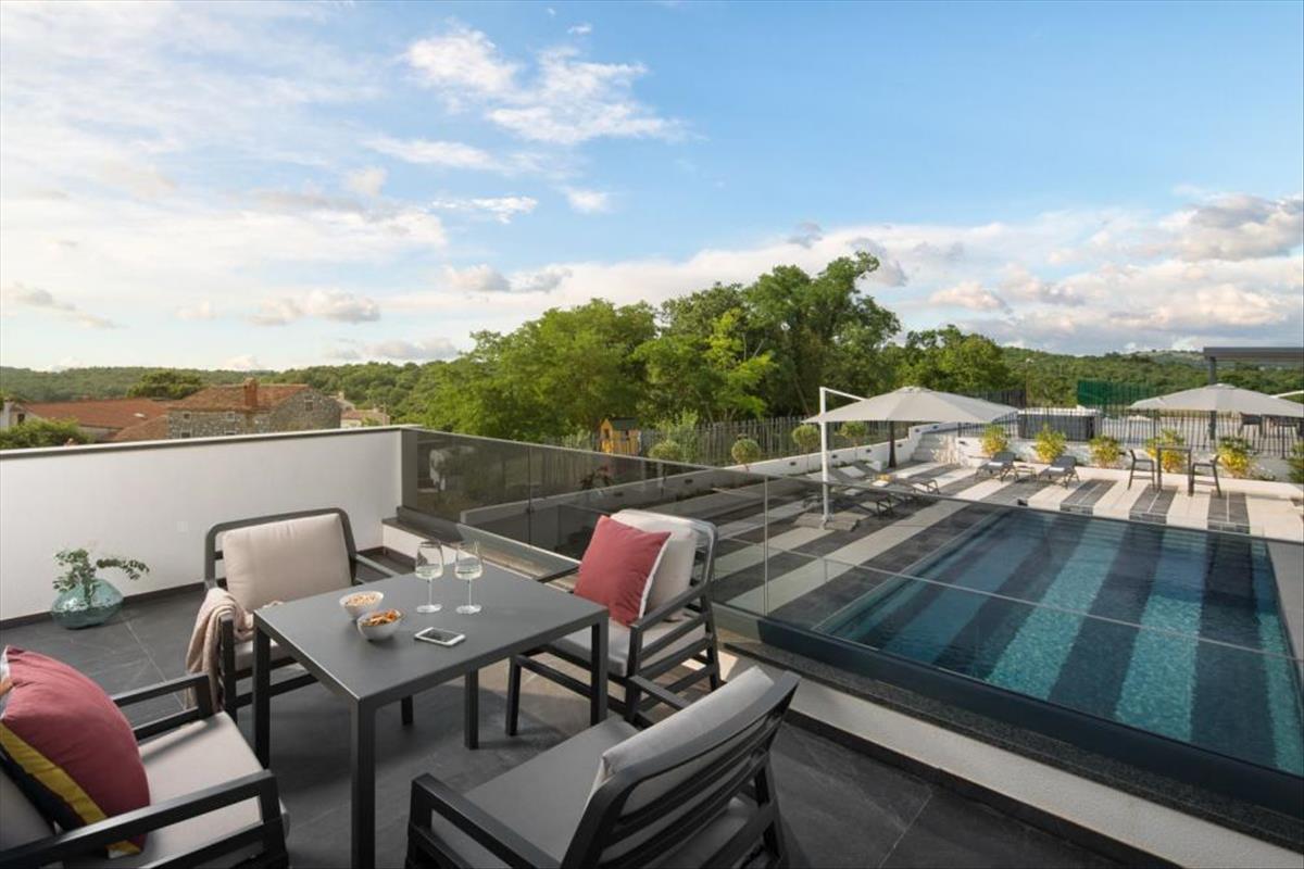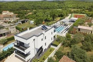 Luxus, modern villa tenisz terepen, úszómedencével és kilátással a tengerre romantikus Vrsar környezetben, kb. 3 Km-re a tengertől.Flengi békés zöldövezetében 203 nm-es villa található. Mintegy 3800 m2-es nagy telken. Fantasztikus modern építészet és lenyűgöző belsőépítészet.
