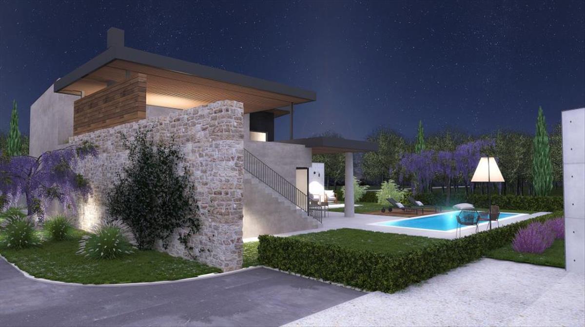 Tengerre néző luxusvilla épült Vodnjanban, több új, modern villa komplexumával.