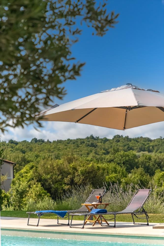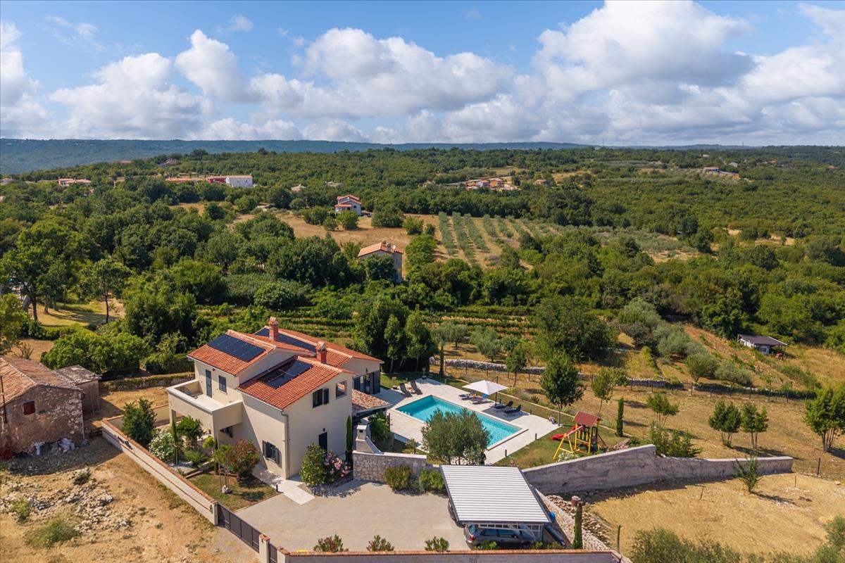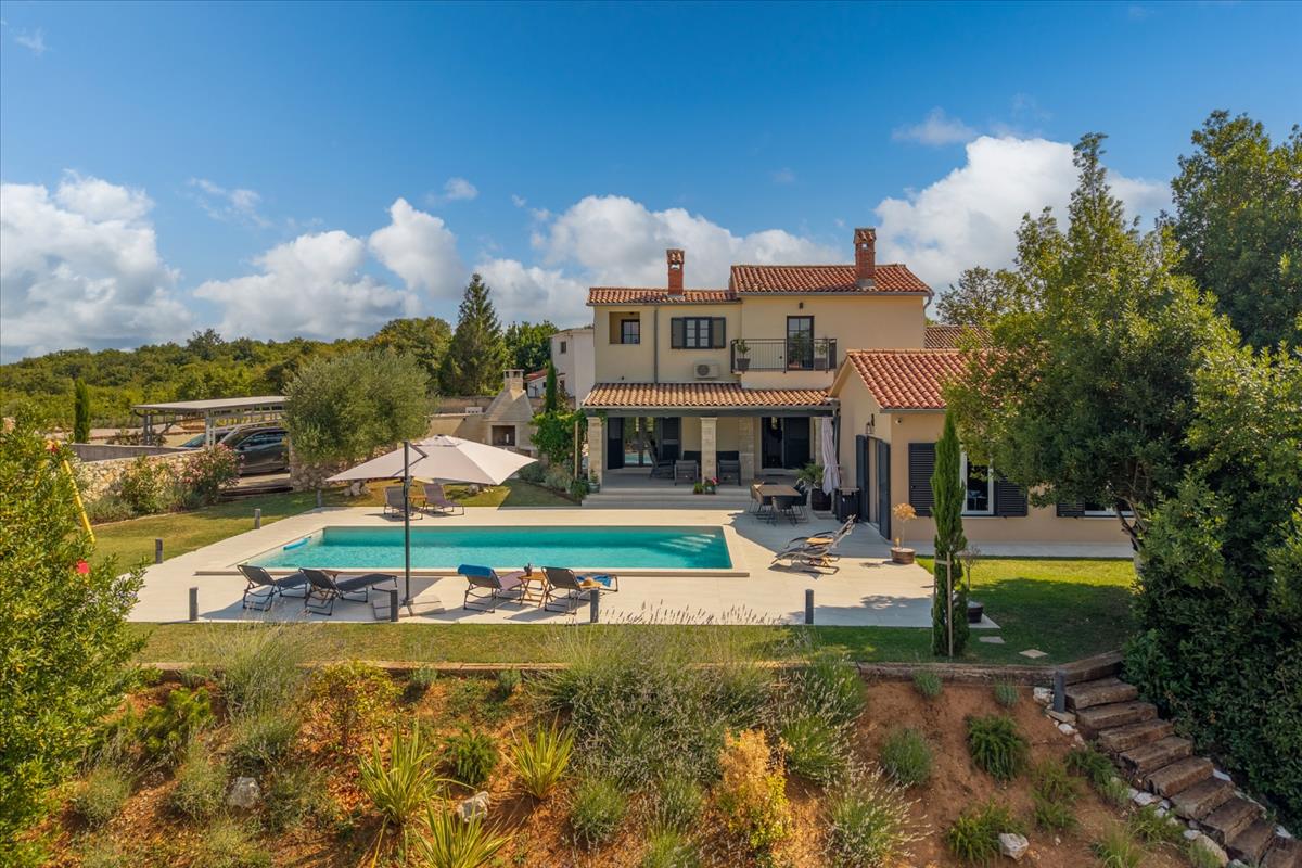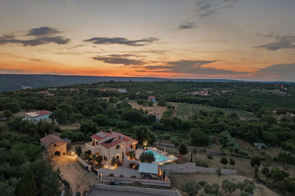 Ez a 273 m²-es, luxusvilla mindössze 15 km-re a tengertől lenyűgöző kilátást nyújt az Učka Természeti Parkra, és az autentikus istriai bájt modern kényelemmel ötvözi. a Labin és Rabac közelében található csendes faluban helyezkedik el, amely magánéletet, nyugalmat és kiváló hozzáférést biztosít a strandokhoz, éttermekhez és alapvető szolgáltatásokhoz.A belső tér négy tágas, fürdőszobás hálószobát, Villeroy & Boch és Grohe berendezésekkel ellátott dizájner fürdőszobákat, egy egyedi tervezésű konyhát, bárpulttal rendelkező étkezőt és egy kényelmes nappalit kő kandallóval tartalmaz. a modern kényelmi szolgáltatások közé tartozik hat uhd tv, egy házi mozi és nagy sebességű internet.