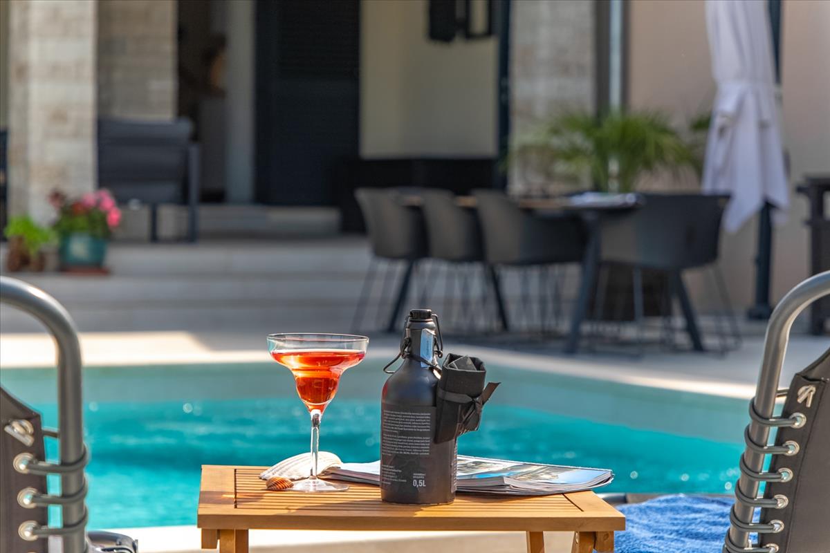 A gyönyörűen parkosított 2, 459 m²-es telken elhelyezkedő villa egy fűtött 50 m²-es medencével, napozóterasszal, kültéri konyhával és grillezővel, fedett teraszokkal és játszótérrel büszkélkedhet. a kertet mediterrán növények és évszázados olajfák díszítik. Parkolási lehetőség akár hat autó számára, köztük két fedett hely.