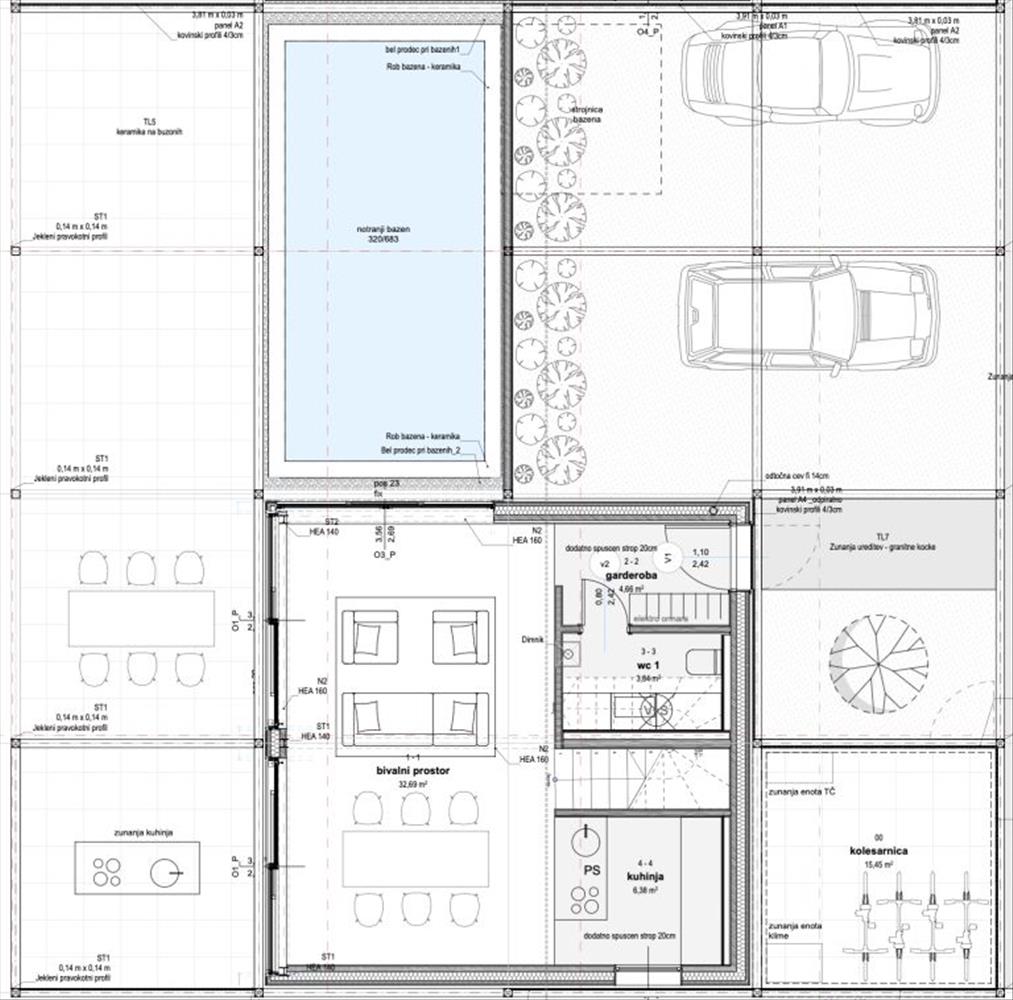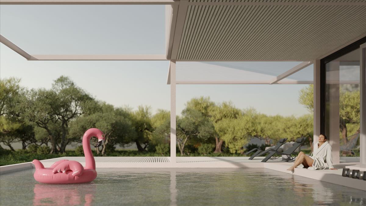 A kültéri tér a pihenésre és szórakozásra lett tervezve, teljesen felszerelt kültéri konyhával és tágas terasszal, amely tökéletes a mediterrán ételek élvezetéhez családdal és barátokkal. a lenyűgöző medence, körülbelül 26, 60 m²-es mérettel, privát menedéket kínál a meleg, napos napokra. Egy nagy tárolóhely kényelmes helyet biztosít a kerti bútoroknak, szezonális tárgyaknak vagy sportfelszereléseknek. a villa emellett egy 77, 24 m²-es tágas parkolóterülettel is rendelkezik, amely elegendő helyet biztosít több jármű számára.