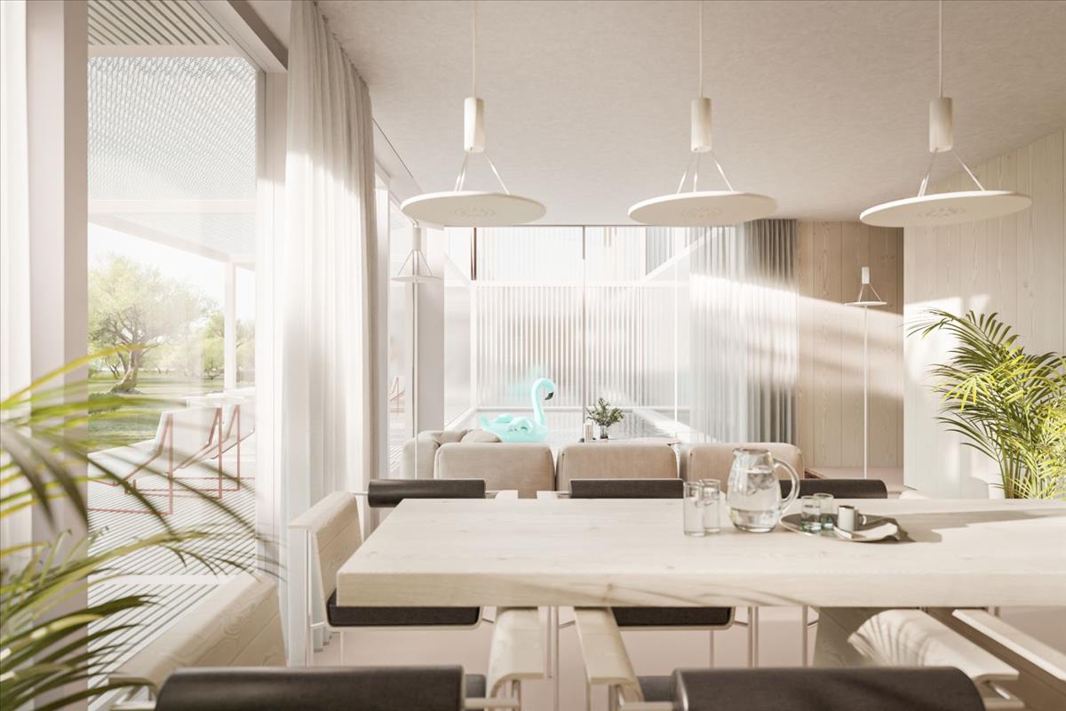 Gondosan kiválasztott, környezetbarát anyagokból és innovatív fenntartható építési technikákkal épült, ez a villa hosszú távú hatékonyságot és kényelmet biztosít. a korszerű hőszivattyú és a padlófűtési rendszer alacsony karbantartási költségeket és optimális hőmérséklet-szabályozást kínál az év során. a tágas üvegfelületek bőséges természetes fényt engednek be, világos és levegős légkört teremtve, miközben zökkenőmentesen összekapcsolják a belső és külső tereket.