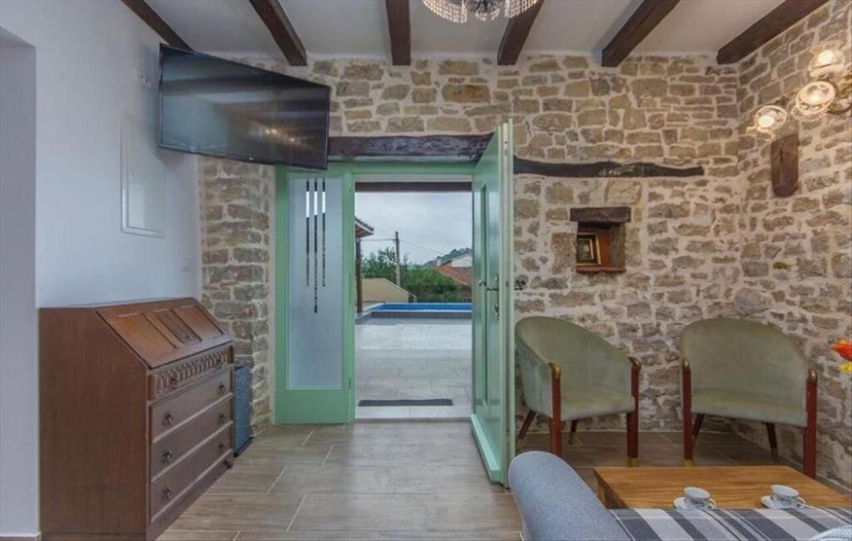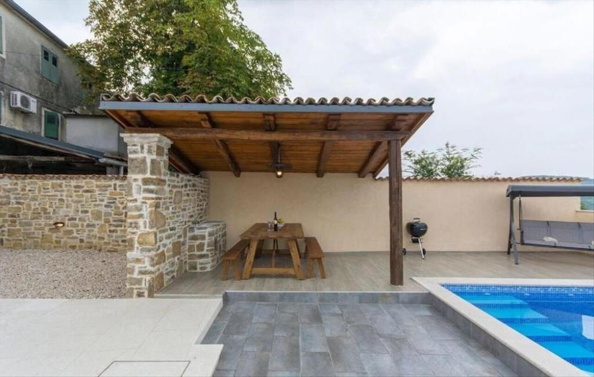 A 350 m2-es kert a házhoz hasonlóan hagyományos isztriai stílusban díszített. a ház előtt található egy pihenőhelyiség, medence, napozóterasz, fedett rész a nyári konyhának és egy kandalló ideális nyári összejövetelekhez.