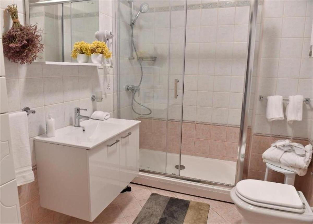 A földszinten található egy apartman konyhával, étkezővel és nappalival, hálószobával és fürdőszobával, ahonnan gyönyörűen parkosított kert és medence található. a vendégek rendelkezésére áll egy stúdióapartman is, mini konyhával és fürdőszobával.