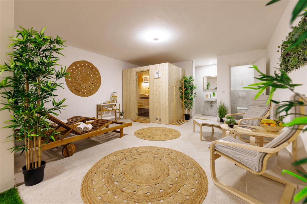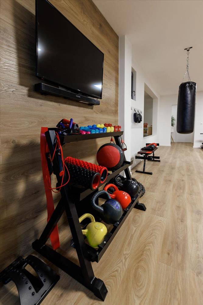 A villa emellett egy mini borospincét, egy professzionálisan felszerelt edzőtermet, egy gyerekjátszószobát multimédiás területtel, valamint egy finn szaunával rendelkező wellness és relaxációs zónát is kínál.