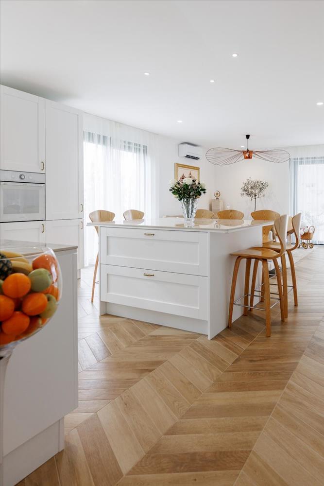 A villa lenyűgöző belső tere három szinten terül el, mindegyik 130 m². Az egyedi belső tér egy modern klasszikus stílust tükröz, amelyet az olasz dizájn inspirált. a befejező simítások azok, amelyek igazán megkülönböztetik ezt a mediterrán szépséget, meleg, otthonos légkört teremtve, miközben mégis tágasságot és luxust kínál.