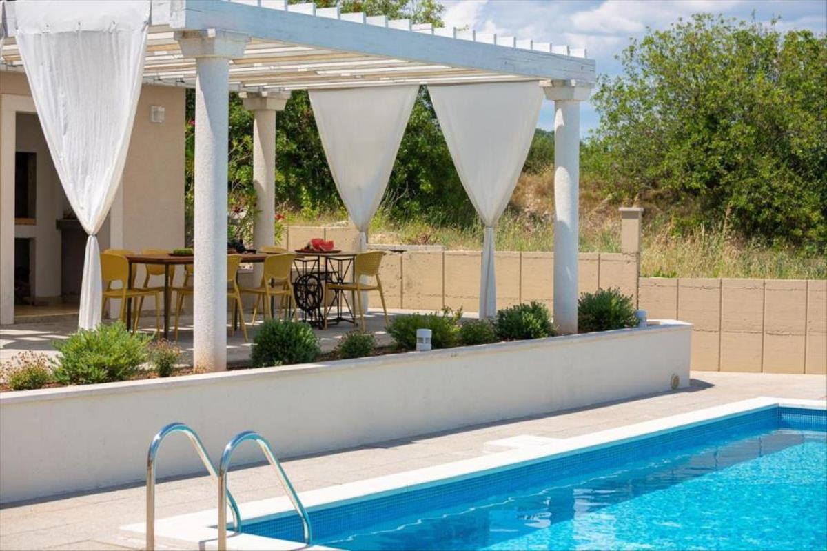 A kiváló minőségű anyagokból épült, központi fűtéssel, meleg víz napkollektorokkal és légkondicionálással felszerelt villa tökéletesen ötvözi a kényelmet a luxussal.