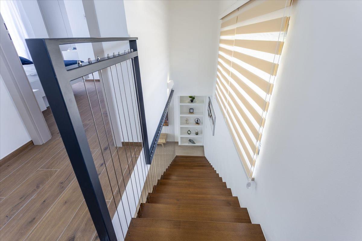 A Svetvinčenat község területén található modern villa a kortárs kényelmi és funkcionális szabványoknak megfelelően lett megtervezve, miközben harmonikusan illeszkedik Isztria vidéki környezetéhez. Az építészeti elrendezés két szinten terül el, és gondosan megszervezett belső tereket kínál, amelyek ideálisak mind a magánlakás, mind a turisztikai bérbeadás céljára.