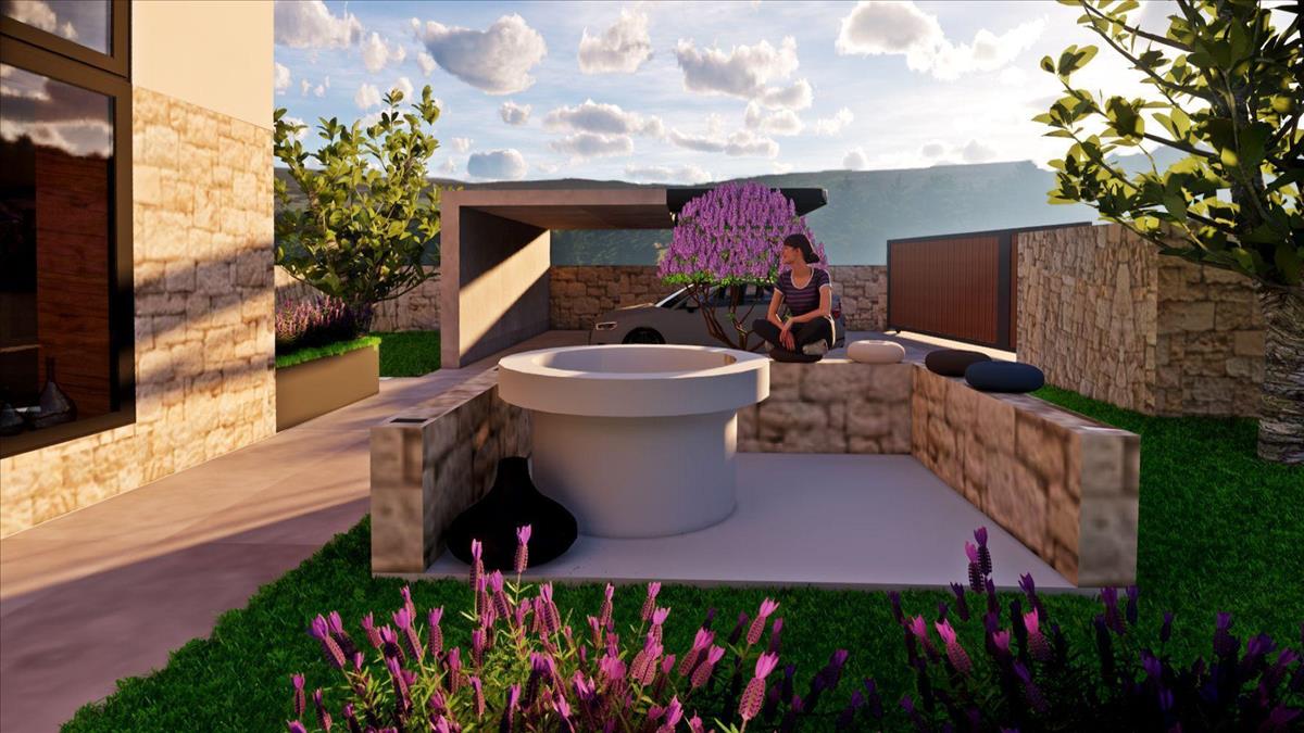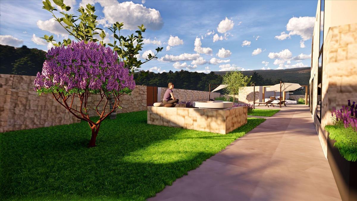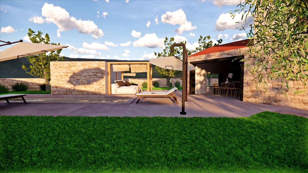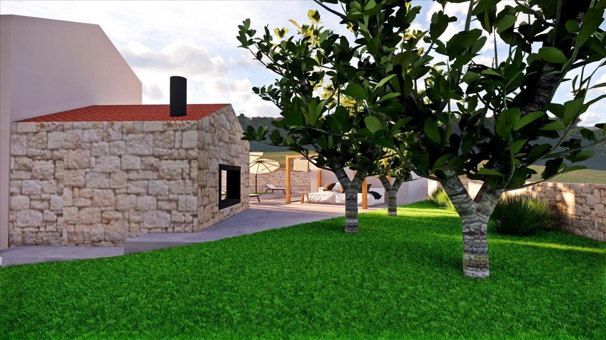 A tágas kert részben száraz kőfallal van bekerítve. Ez a tökéletesen integrált ingatlan kivételes lehetőség a kényelmes családi életre, valamint befektetési befektetésnek a turisztikai bérbeadásban.