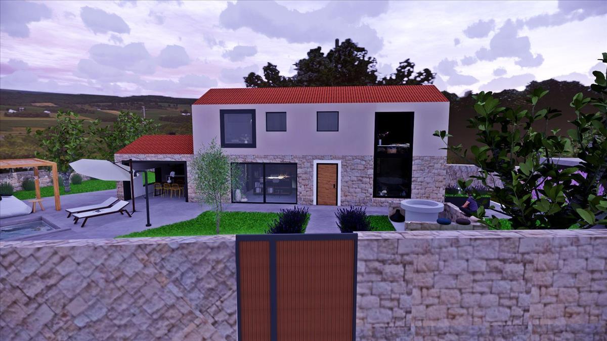 Az ingatlant a mikrolokáció mellett a kivitelezés minősége is jellemzi, mely garantálja a hosszú távú elégedettséget és a lakhatás minőségét. Tiszteletben tartva a hagyományos őshonos értékeket és az isztriai örökség építészetét, egy régi, lepusztult isztriai kőházból egy igazi kis paradicsom, azaz egy hedonista sarok funkcionális belsővel és külsővel jött létre. a rekonstrukció során isztriai követ és új technológiákat használtak. a ház és a medence minden felülete epoxi mikrocementtel van bevonva, a szigeteléshez 10 cm vastag kőgyapot használtak. a ház szelíd építészetével nem zavarja a környezetet, hanem a természeti környezet, a hagyományos isztriai építészet és a modern dizájn szinergiáját teremti meg. a hagyományt a kő és a nyeregtető, a kortárs kifejezést pedig egy nagy formátumú üvegfal szimbolizálja.