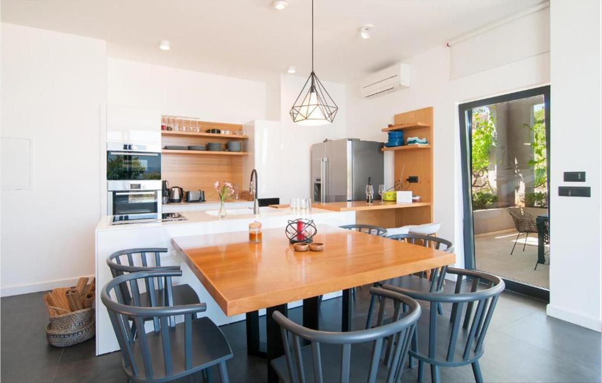 A villa belső terében egy nyitott konyha, étkező és nappali, valamint két hálószoba található, mindegyikhez saját fürdőszoba tartozik.