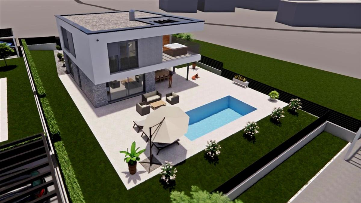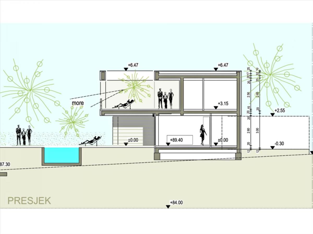 A tulajdon 171 m² lakóterületet kínál egy 651 m²-es telken. Csendes környéken helyezkedik el, családi házak és nyaralók között, ideális egyensúlyt teremtve a tenger közelsége és a városi szolgáltatások elérhetősége között.